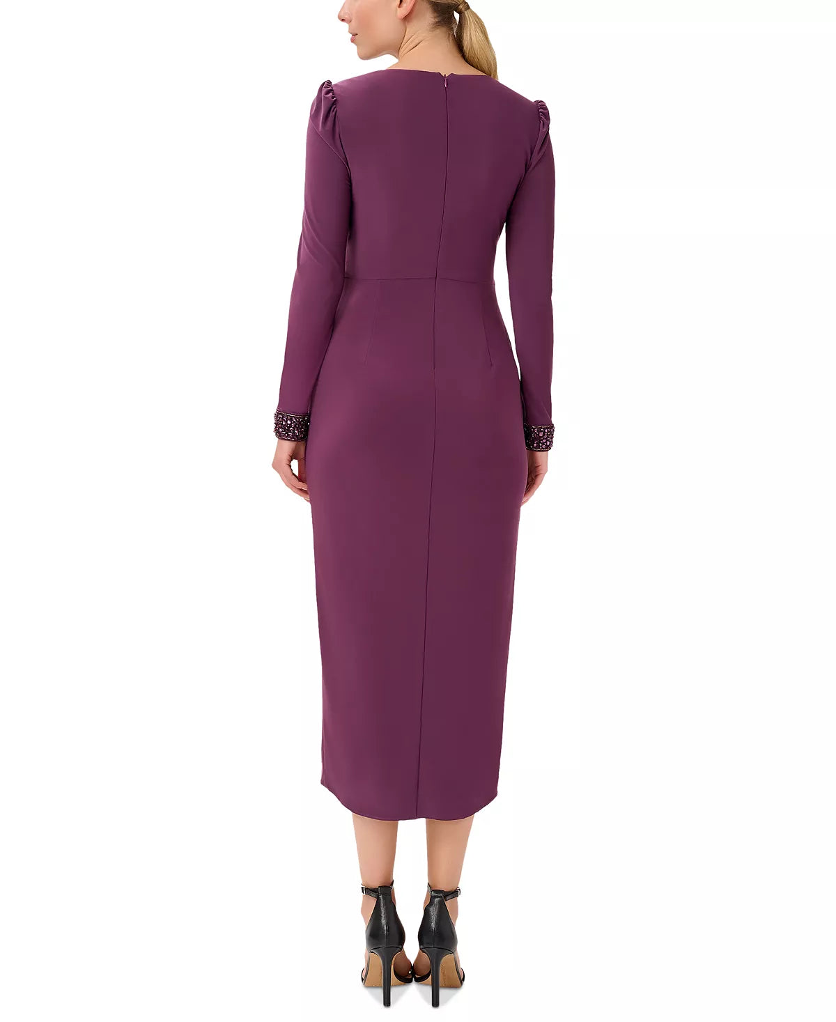 Adrianna Papell Jersey Long-Sleeve Wrap Midi Dress