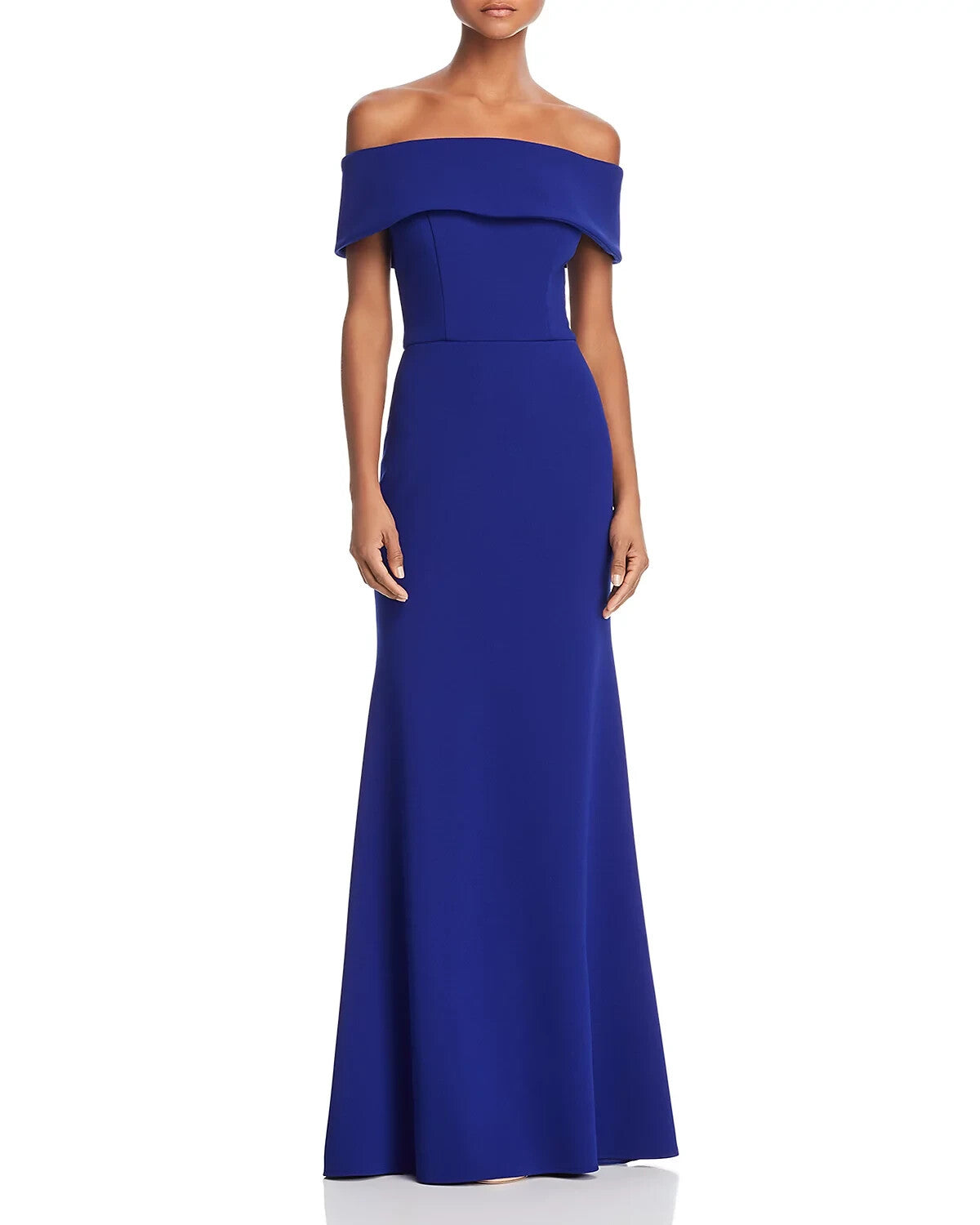 AQUA Off-the-Shoulder Scuba Crepe Gown MSRP $249