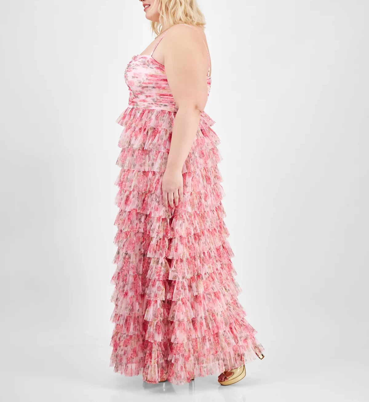 B Darlin Trendy Plus Size Floral Print Ruffle Tiered Gown MSRP $169