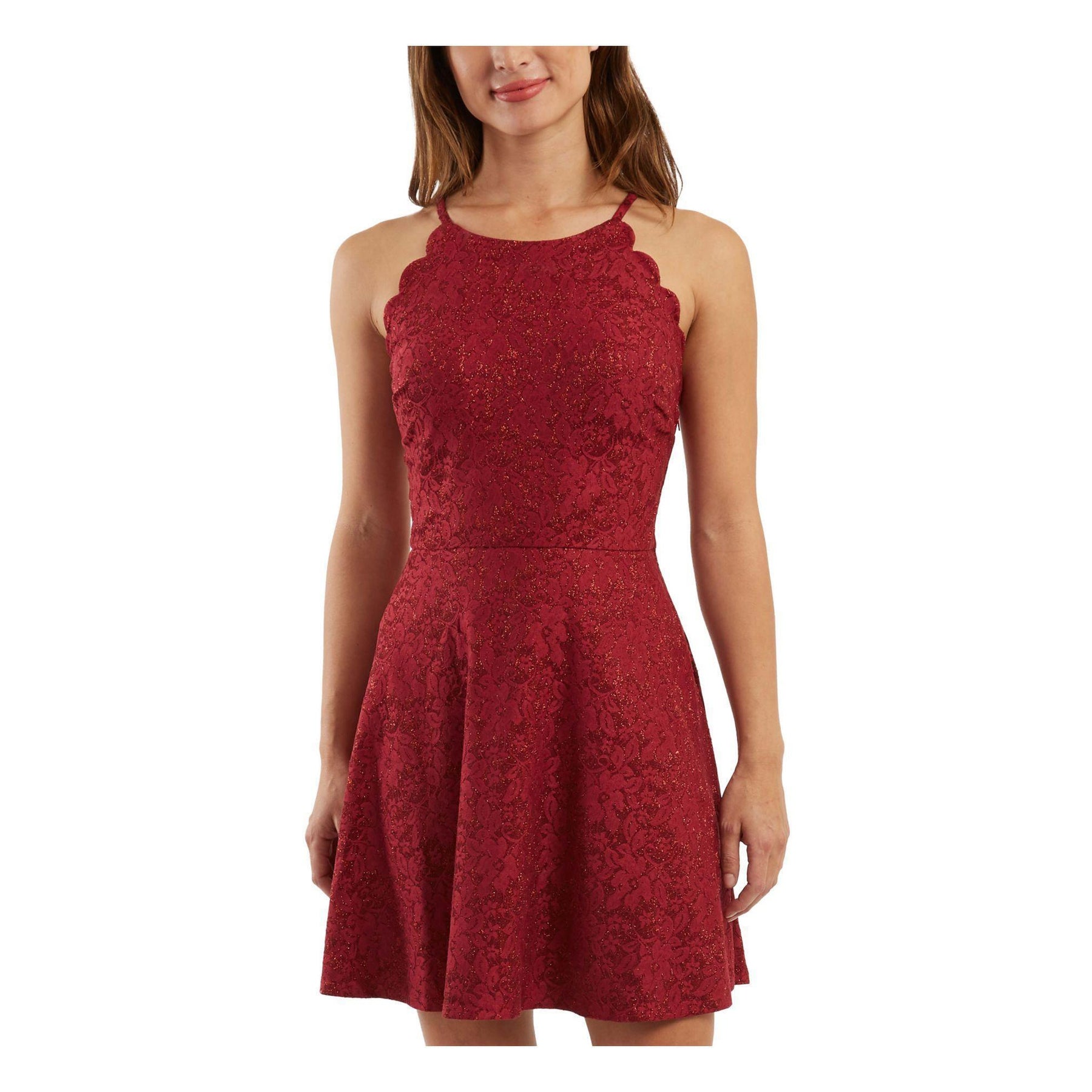 Stretch Scalloped Cut Out Back Sleeveless Halter Neck Polyester/SpandexMachine wash