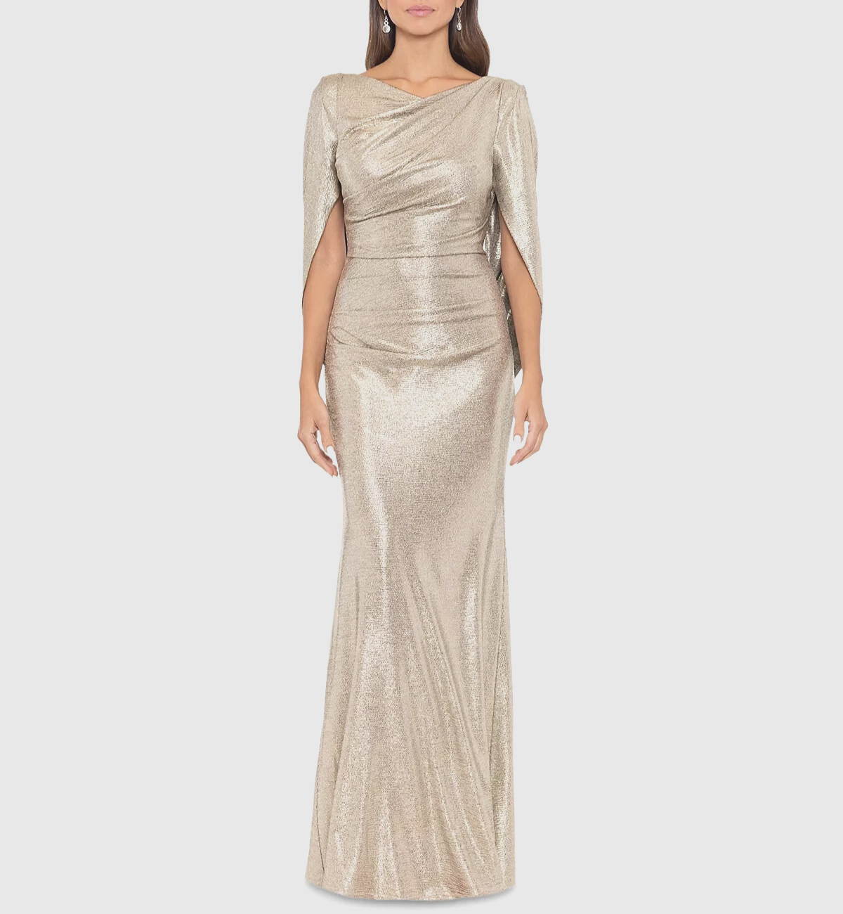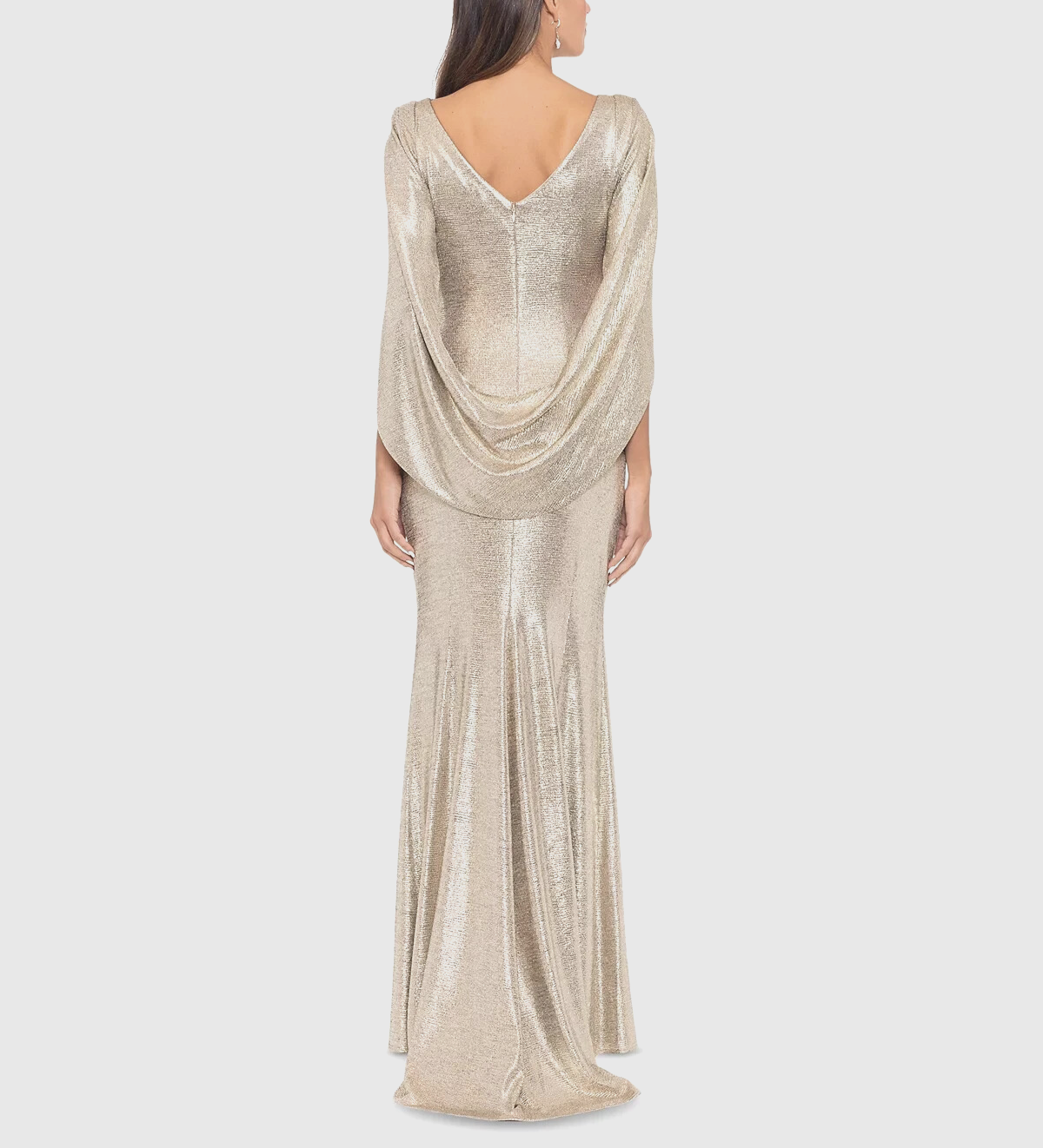 Betsy & Adam Metallic Cape-Sleeve Gown MSRP $269