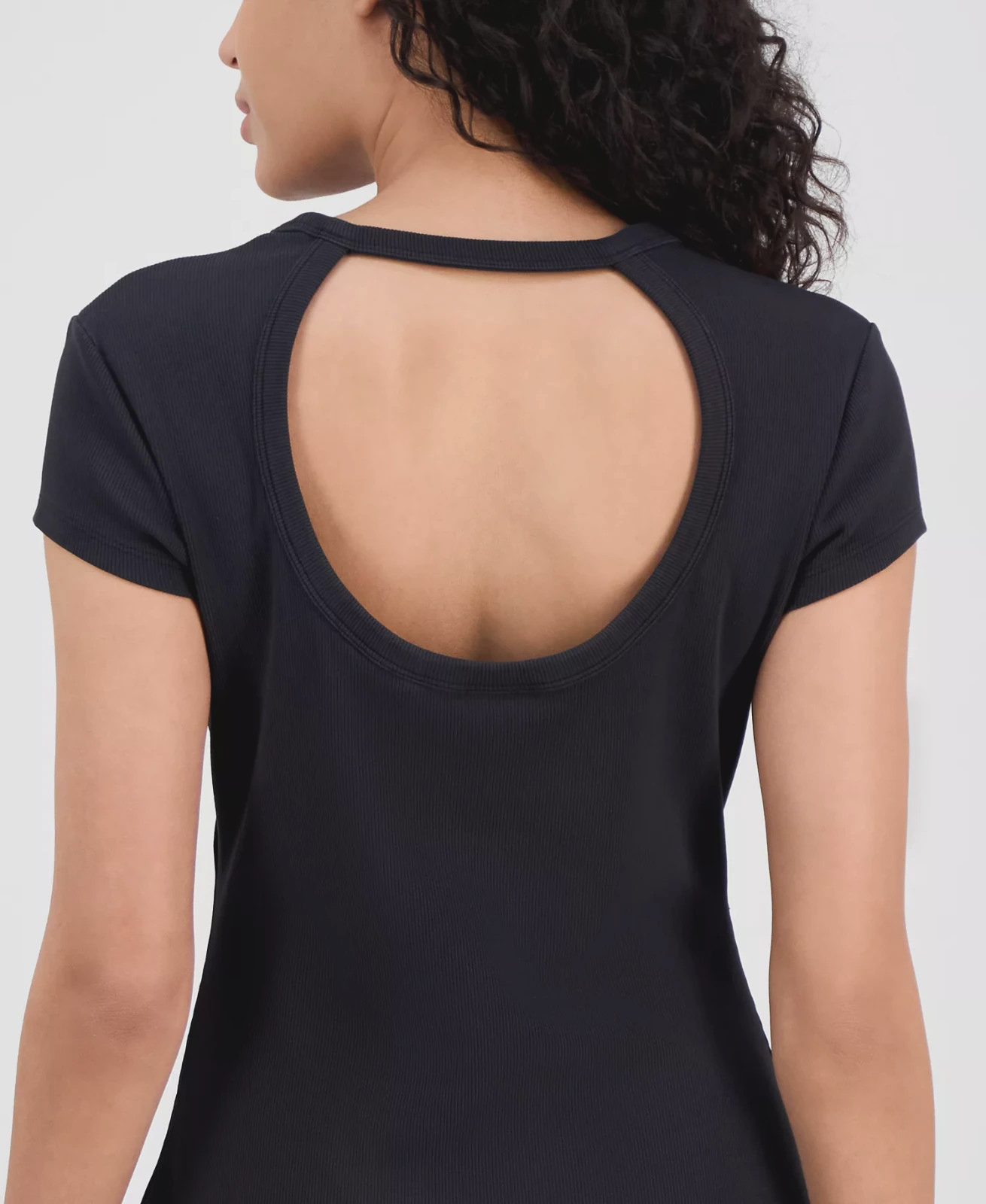 • Open-back detail; ribbed texture; slit at side hem