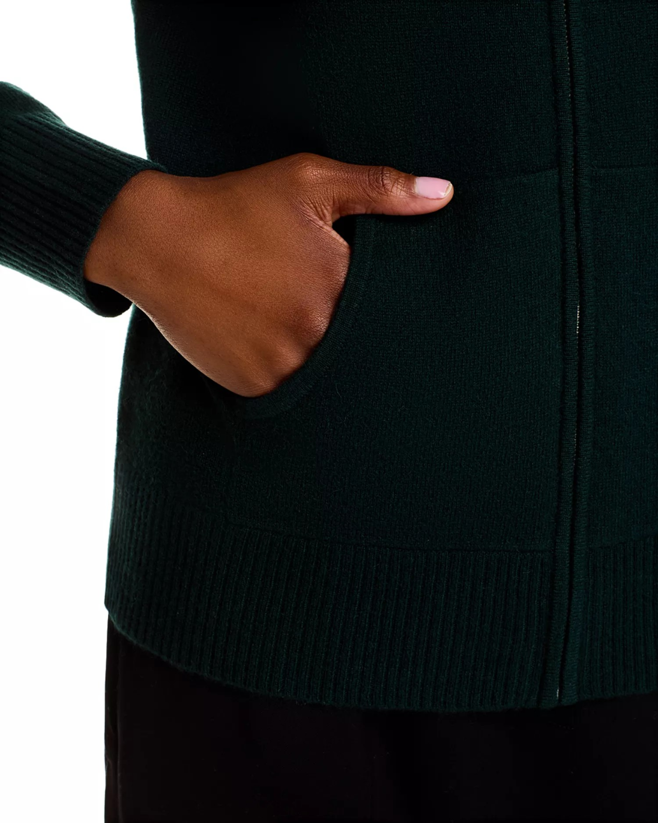 The perfect layering piece does exist! Versatile and sumptuously soft, this cashmere hoodie elevates every off-duty look. Meticulous construction includes a ribbed trim, split kangaroo pockets, and a zip-front silhouette. Pair it with the matching joggers for head-to-toe coziness.