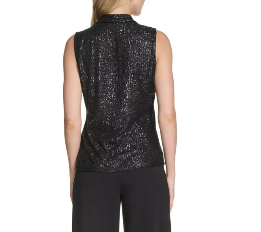 Achieve a beautiful look with this sleeveless blouse by Calvin Klein, decorated with dazzling sequins for a hint of glamour.
