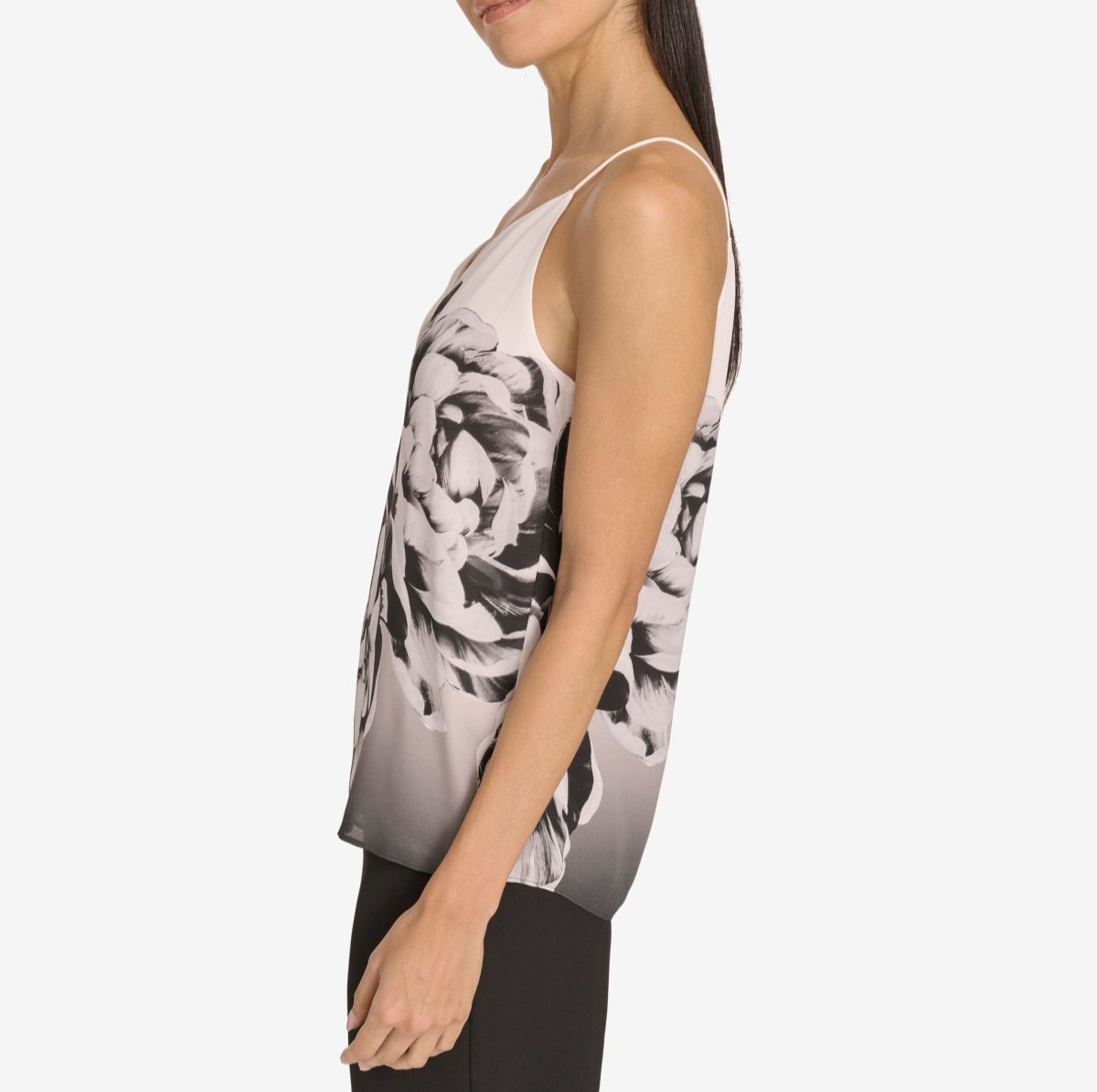 A chic floral print adds interest to this Calvin Klein v-neck camisole, perfect worn alone or under a suit jacket.