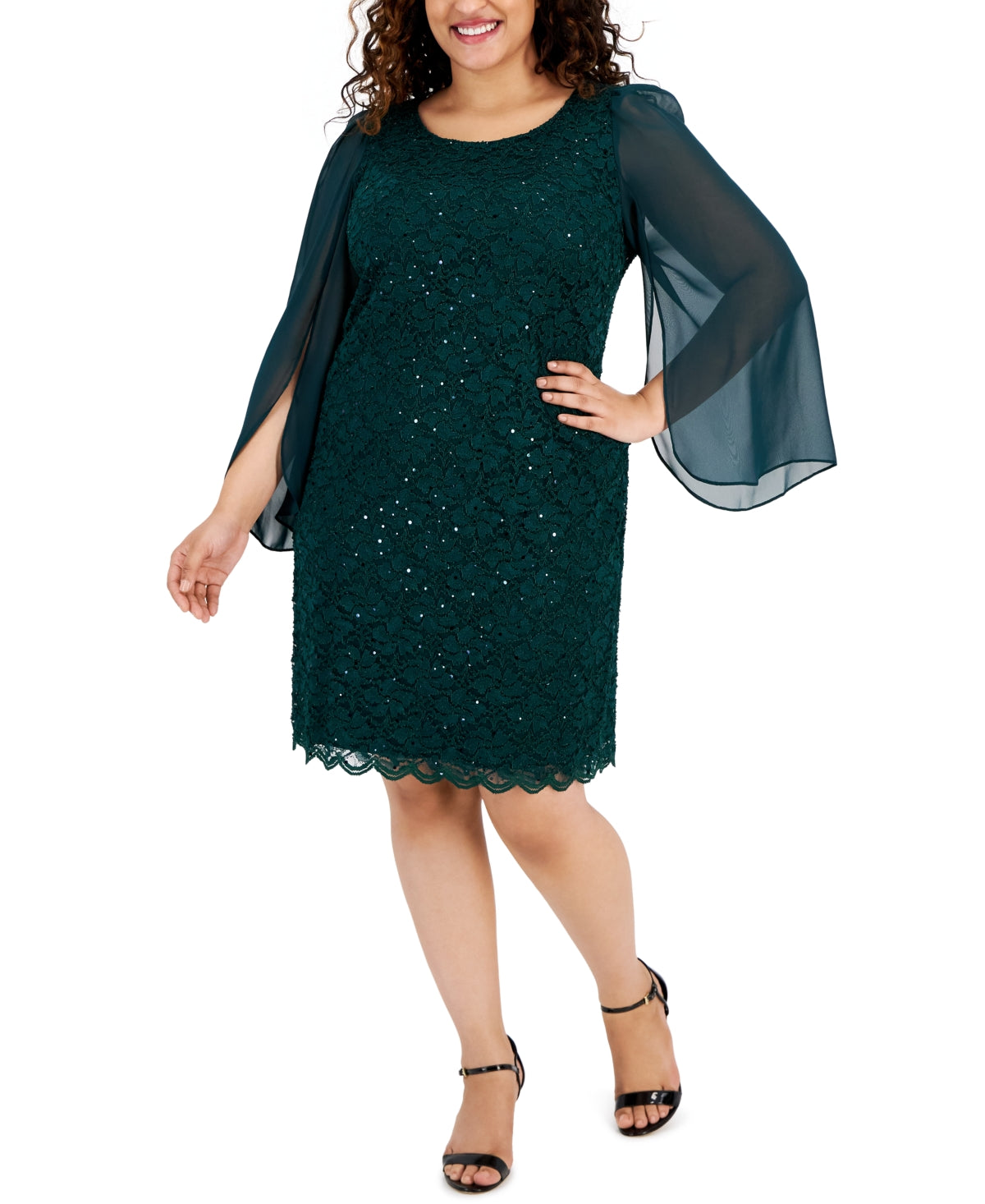 Say cheers to your new party look: Connected's lace plus size sheath dress.