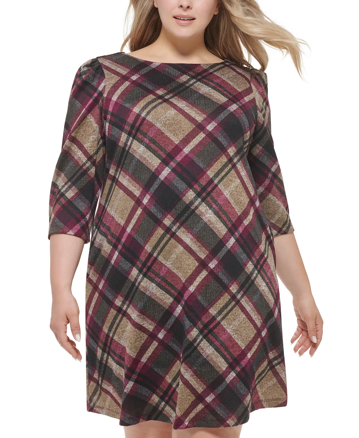 High-impact plaid makes a bold statement in the simple A-line silhouette of this Jessica Howard petite dress.