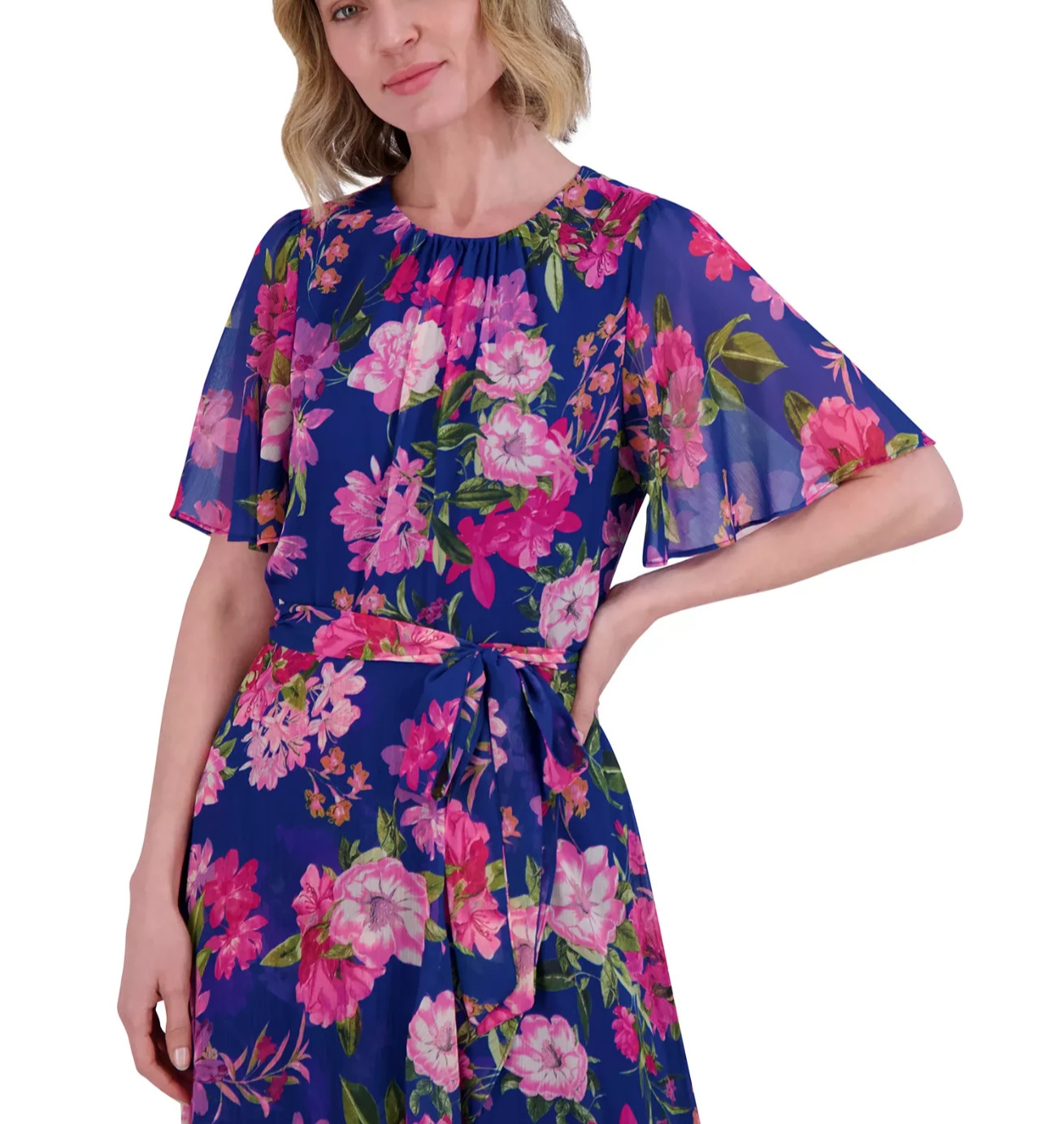 Jessica Howard Women's Floral-Print Belted Flutter-Sleeve Dress MSRP $139