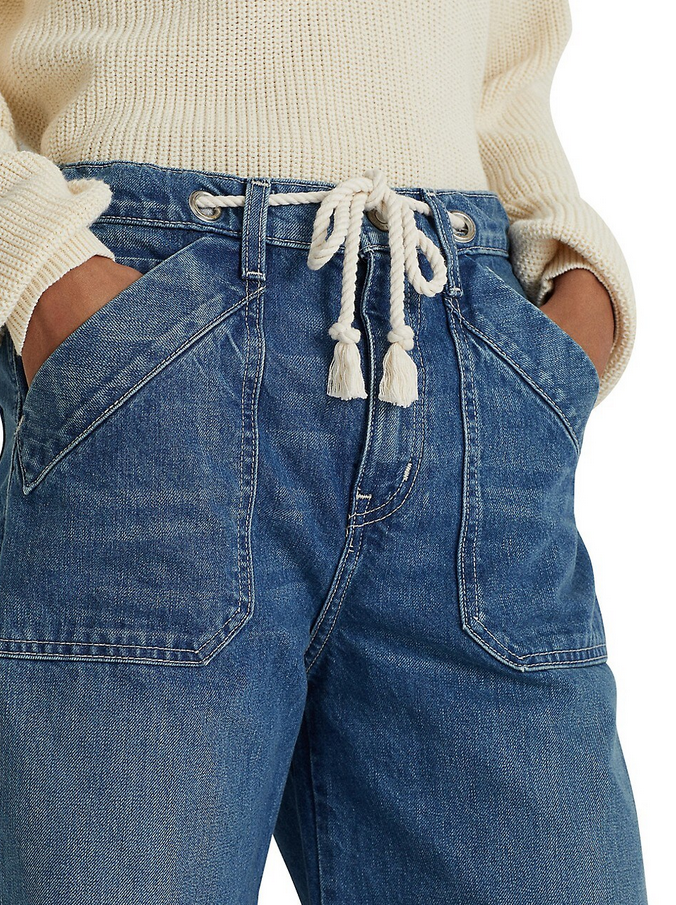 Rendered in right-hand twill denim, Lauren Ralph Lauren's breezy wide-leg jeans are designed with intentional distressing and a drawcord waist with tassel ends for an effortless, vintage-inspired look.