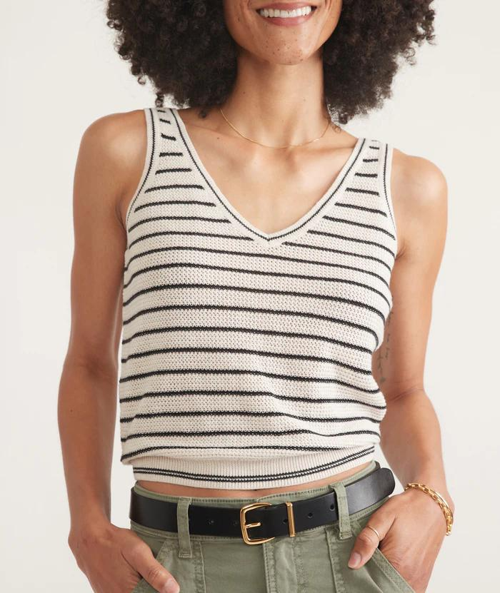 It's like a sweater and a tank had a baby. An absurdly soft baby. This knit top has a flattering v-neck and back (read: shows off your tan). It's the versatile, extremely comfortable, piece you'll be reaching for all summer.