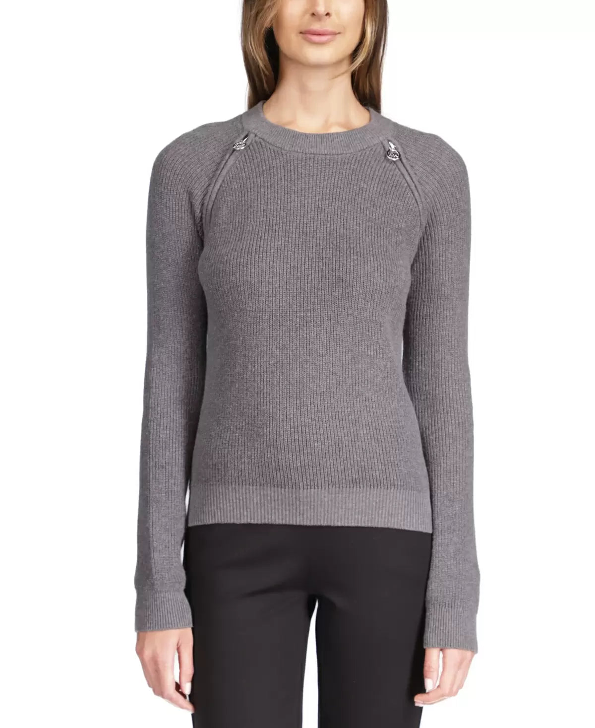 Gold-tone zippers with logo pulls bring fresh edge and signature style to this classic shaker sweater from MICHAEL Michael Kors.