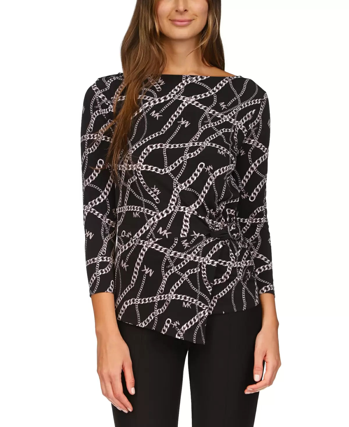 Throw on a casual look by donning the classy MICHAEL Michael Kors twist-front hardware top.