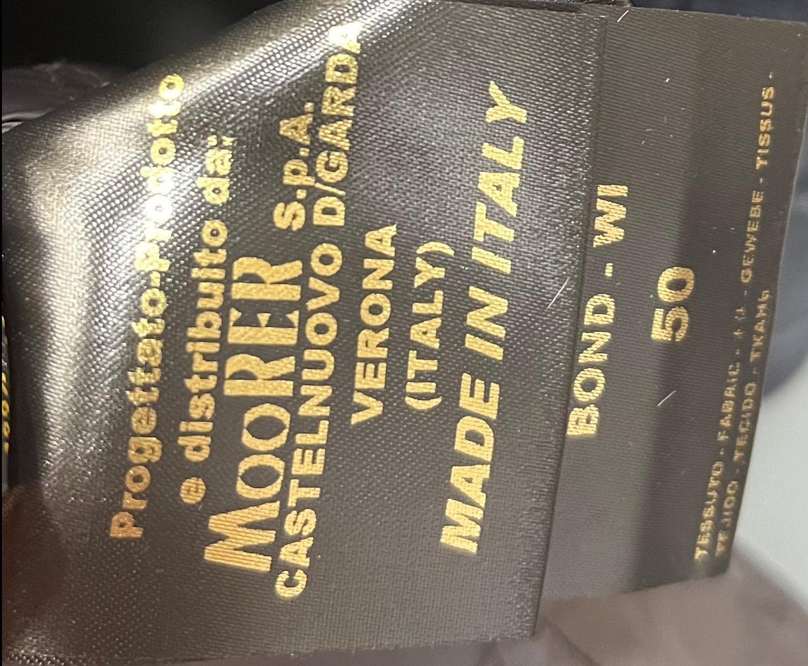 Three-quarters length MooRER single-breasted goose down jacket. Lightweight with a zip-front vest. Made of three-layer windstop water-resistant fabric.