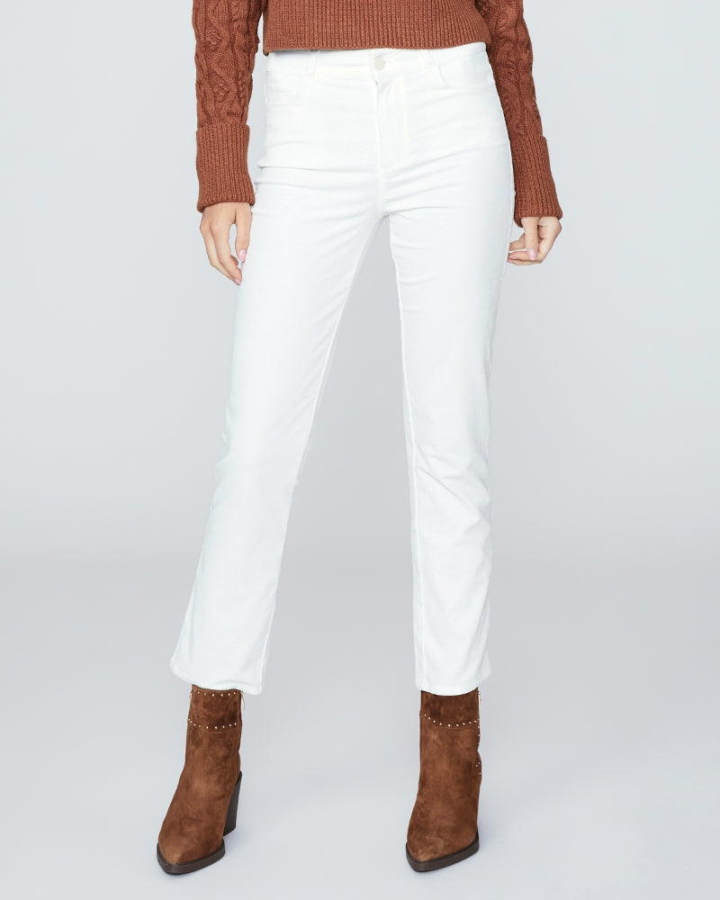 Our high-rise, perfectly straight fit looks luxurious and elevated in ecru corduroy, the must-have fabric of the season. Our new supremely soft micro-corduroy is crafted with the perfect amount of stretch for the most comfortable fit from morning to moonlight.