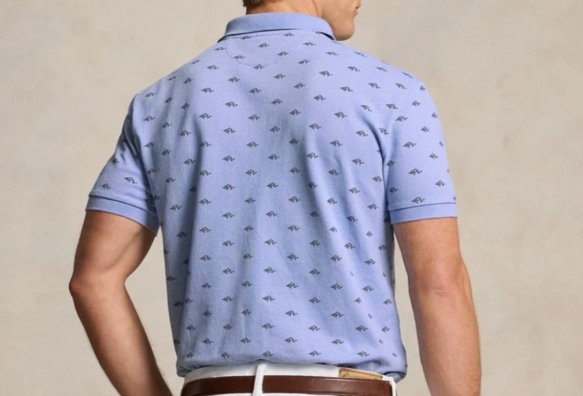 Styled with a three-button placket with genuine mother-of-pearl buttons, the Polo Ralph Lauren Classic Fit Monogram Stretch Polo Shirt works for both casual and formal looks. This printed polo shirt is crafted from cotton and elastane blend that prov