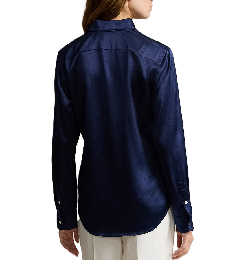 Slim Fit: a narrow shoulder and gently tapered waist. Intended to hit at the hip. Spread collar Buttoned placket Shell buttons Long sleeves with buttoned barrel cuffs Shirttail hem Back yoke 100% silk Dry clean or hand wash cold Imported