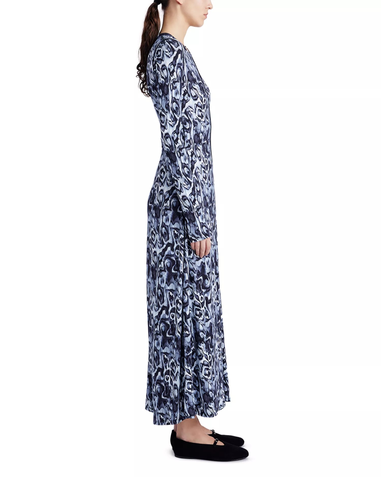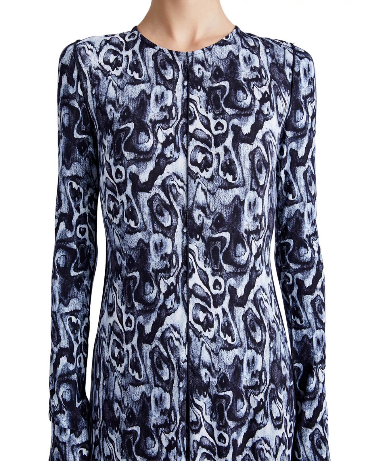 FeaturesRound neckLong sleevesPrinted jersey fabricA-line silhouettePullover styleLinedImported