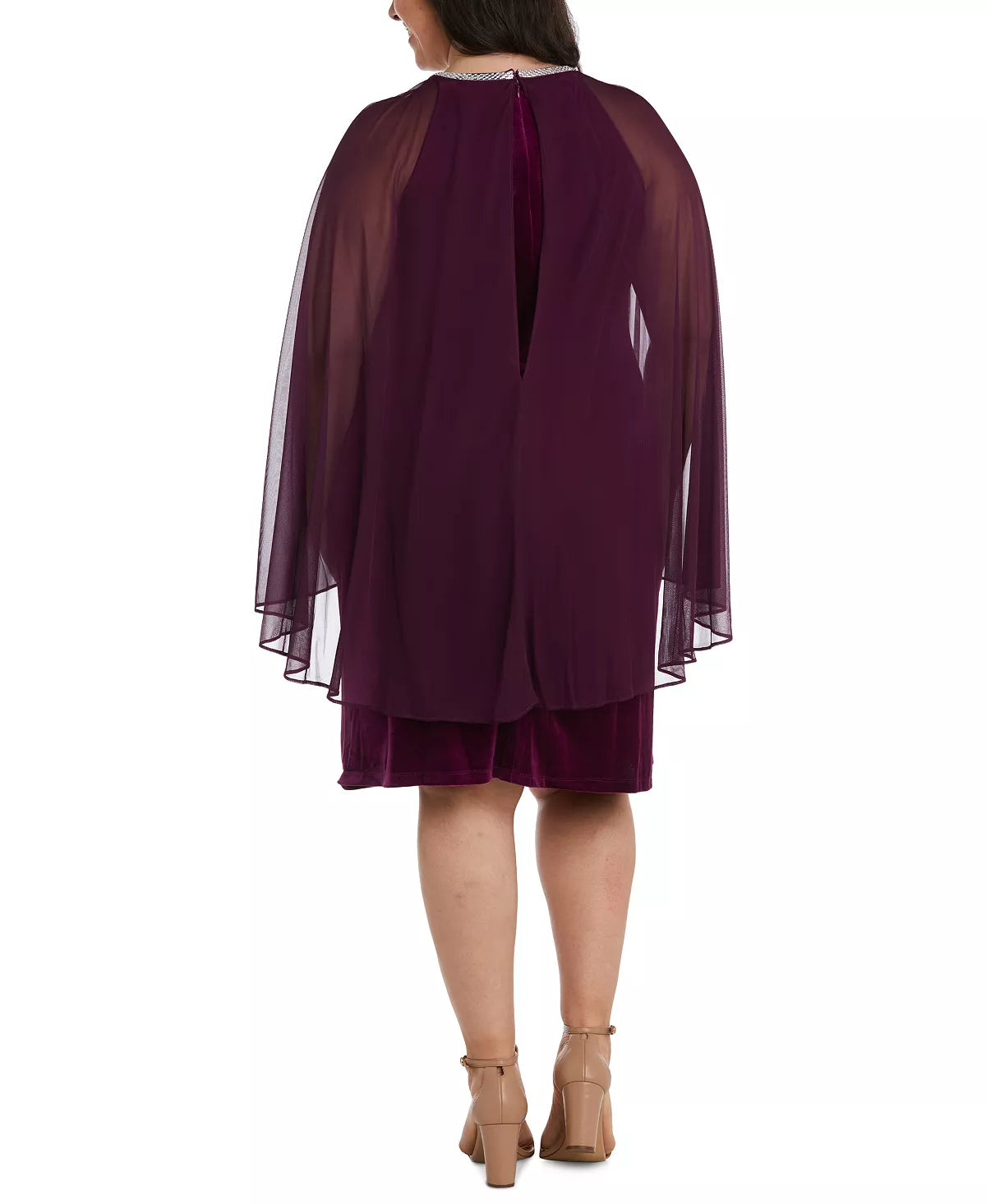Arrive at your next event with dramatic flare in this luxe plus size dress with a cape overlay from R & M Richards.