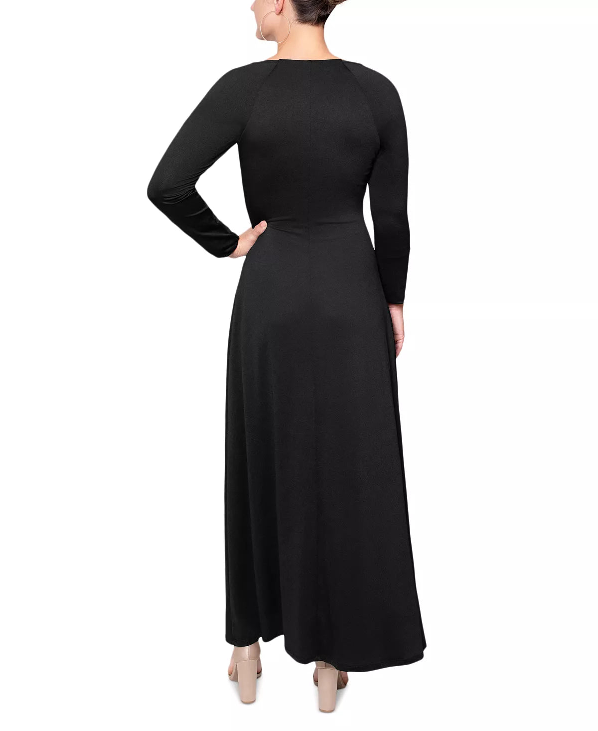 Square neckline with strappy detail Long sleeves A-line silhouette Fitted through the chest and waist; structured A-line skirt sits slightly over hips Jersey-knit: soft and stretchy Polyester/elastane Machine washable Imported