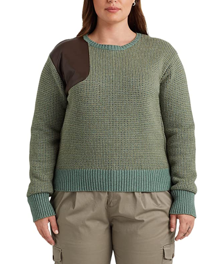Ralph Lauren Plus Size Faux Leather Trim Wool Blend Sweater
