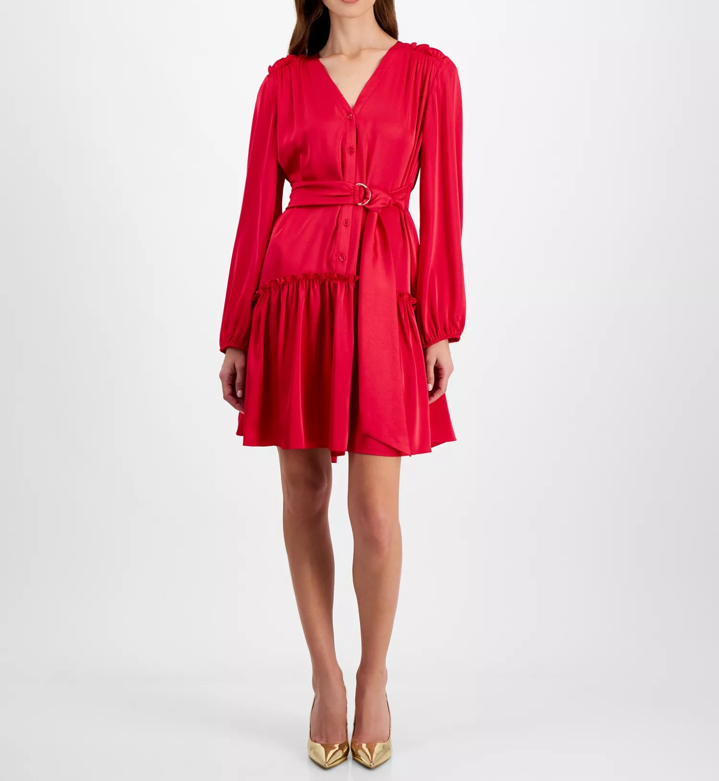 Taylor Women's Ruffled-Hem Tie-Waist Fit & Flare Dress MSRP $128