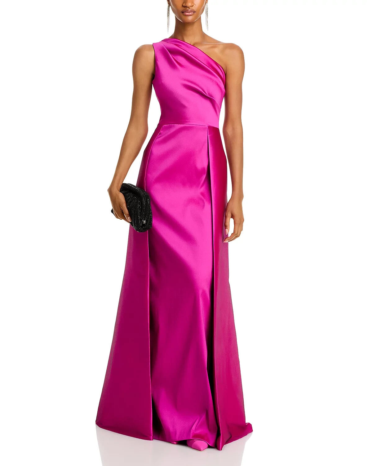 Teri Jon by Rickie Freeman Crepe One Shoulder Gown MSRP $1080
