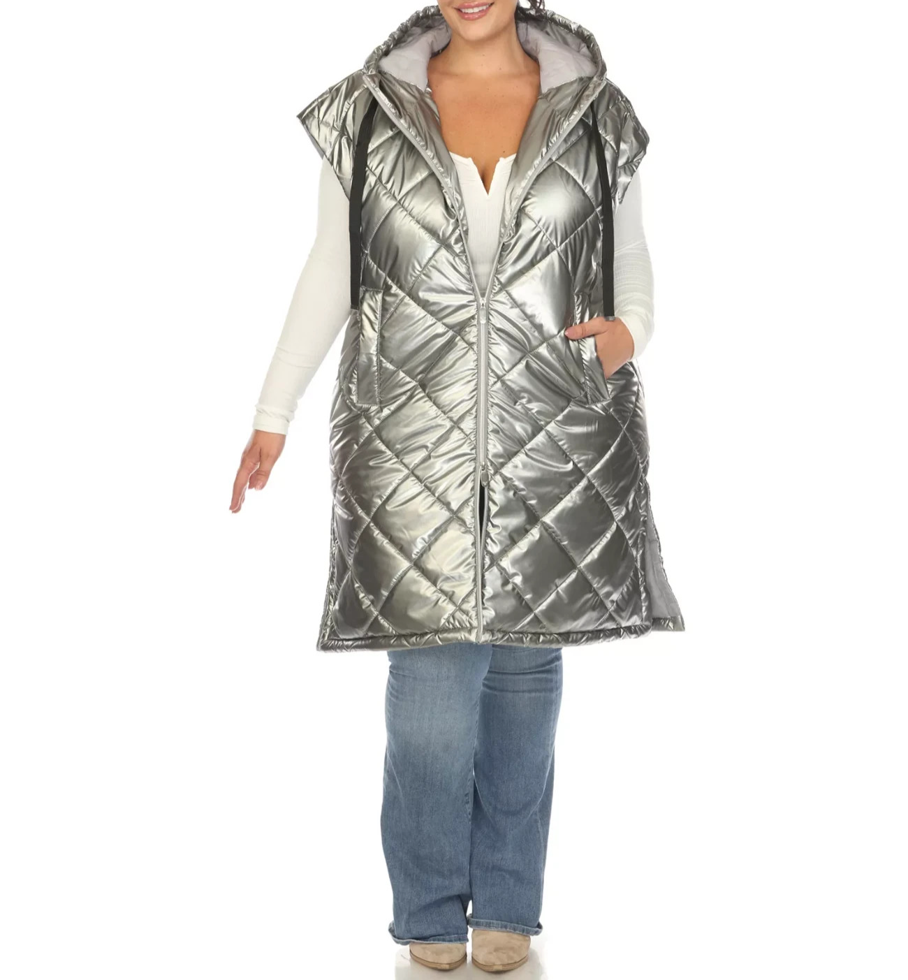 White Mark Plus Size Metallic Puffer Vest Jacket MSRP $104
