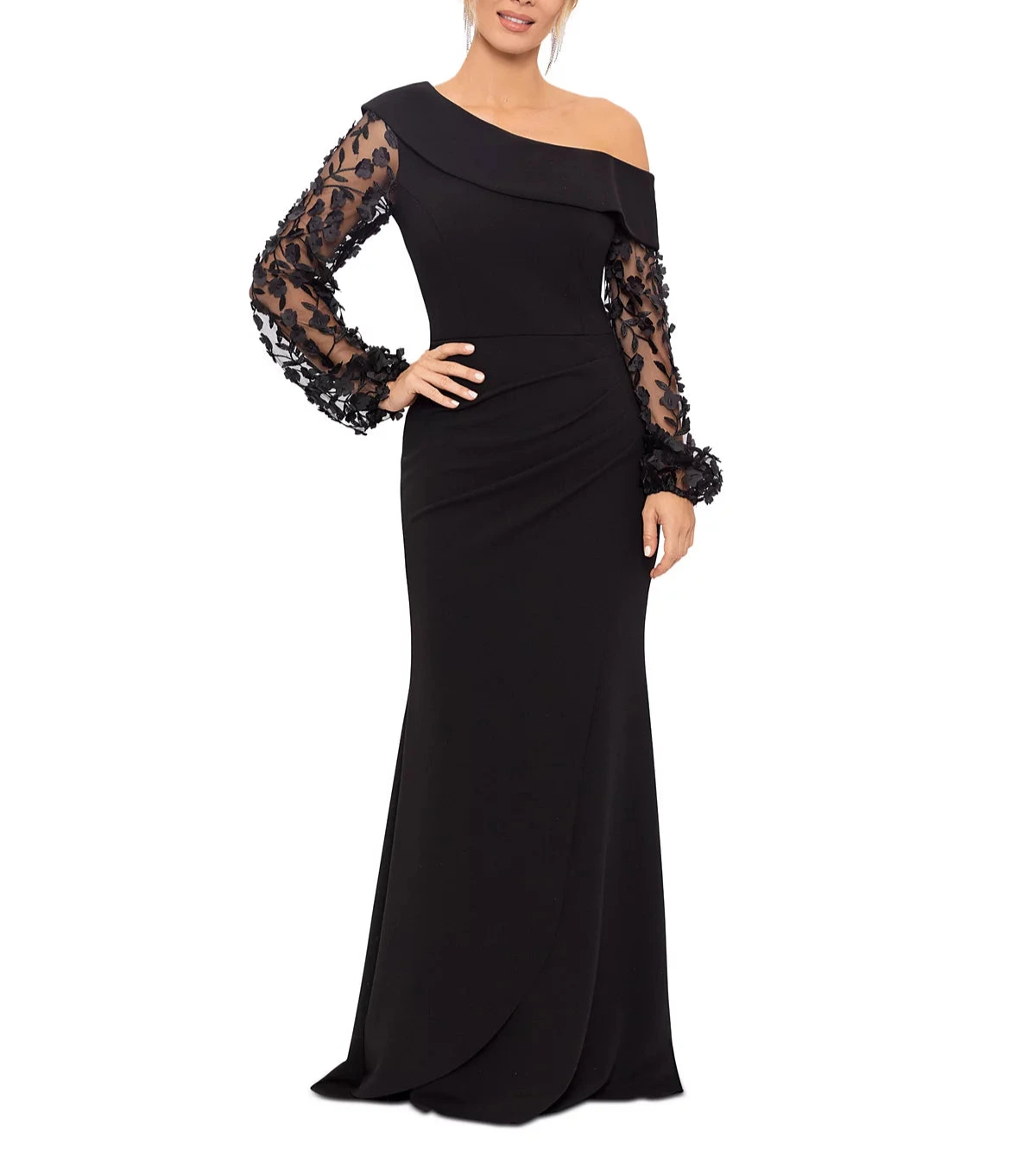 XSCAPE Petite Off-The-Shoulder Floral-Sleeve Gown