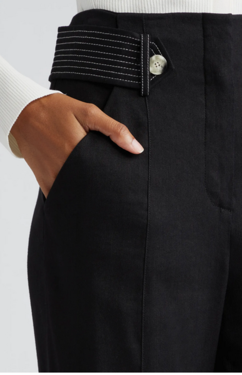 Veronica Beard Sunny Button Tab Linen-Blend Wide Leg Pants MSRP $448