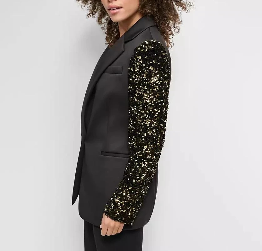 DKNY Sequinned-Sleeve Single-Button Blazer MSRP $169 Size 6 # 4C 1391 New