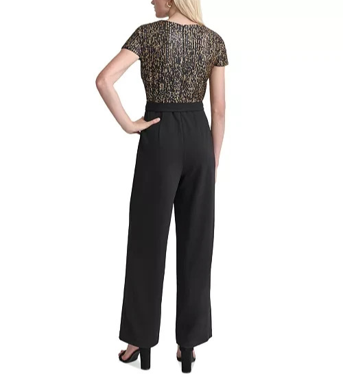 Long lines and glamorous sequins make this jumpsuit from DKNY an option you take from day to evening events seamlessly.