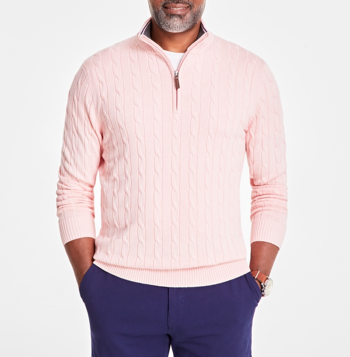 A classic cable knit pattern adds texture and style to this sweater with a quarter-zip closure from Club Room.