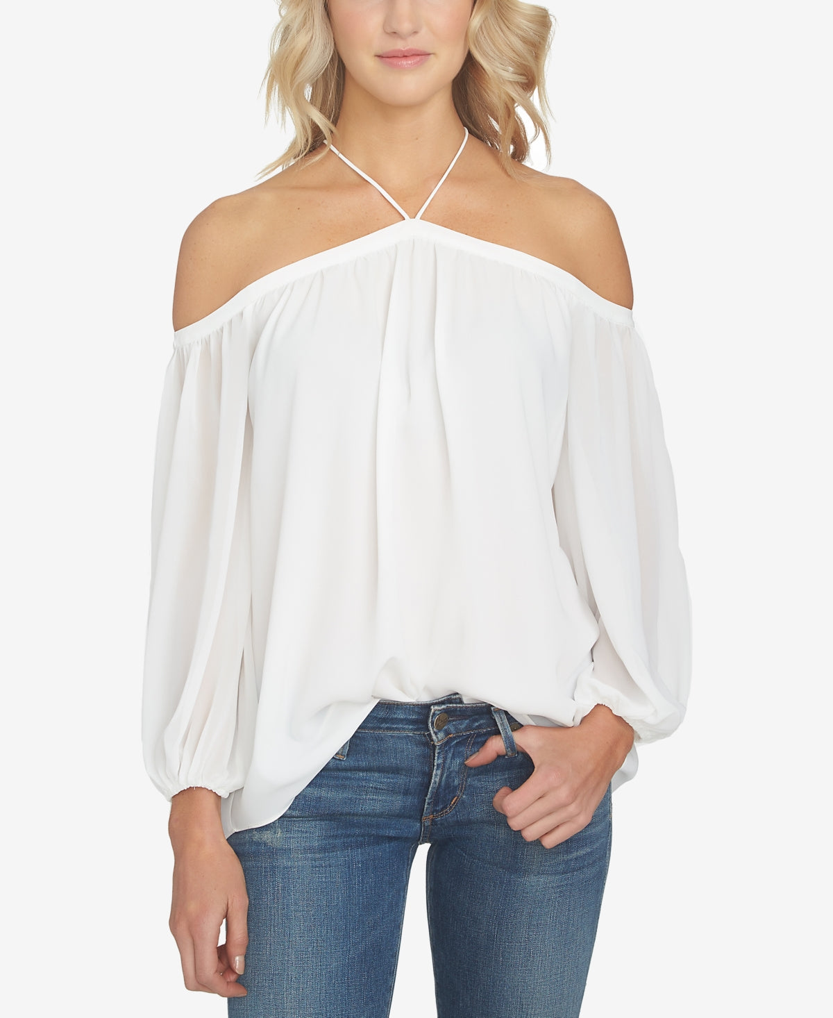 Designed with shoulder-baring sleeves and a relaxed, billowing silhouette this blouse from 1.STATE is an alluring option for your next night out.