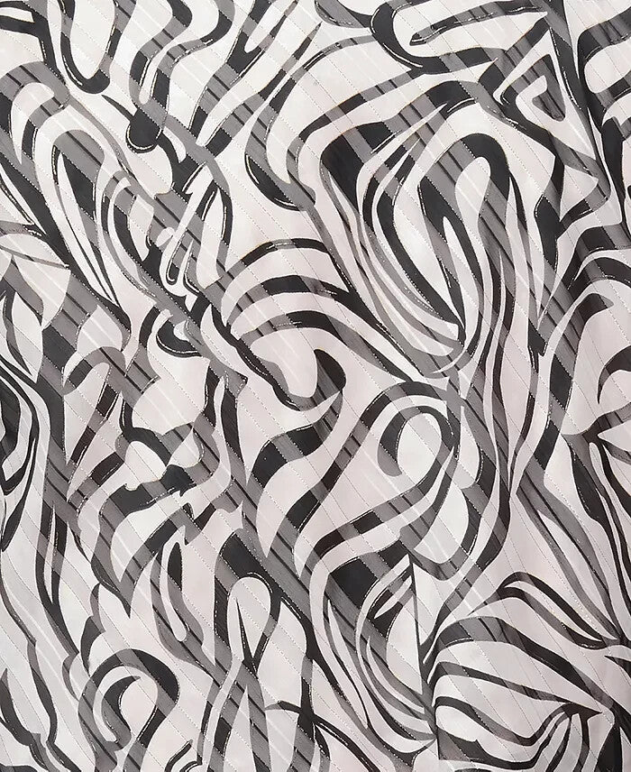 Effortless stylish for weddings and special events, this plus size asymmetrical top from Alex Evenings features a beautiful metallic-accented print on airy chiffon fabric.