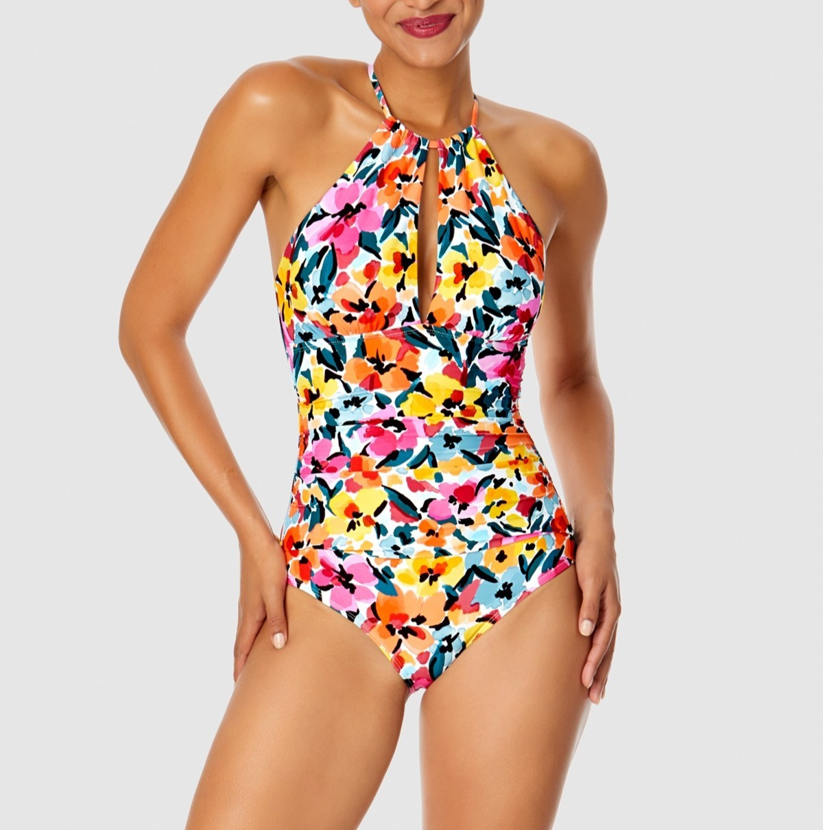 Bring the blooms to the beach with this high-neck one-piece swimsuit from Anne Cole.