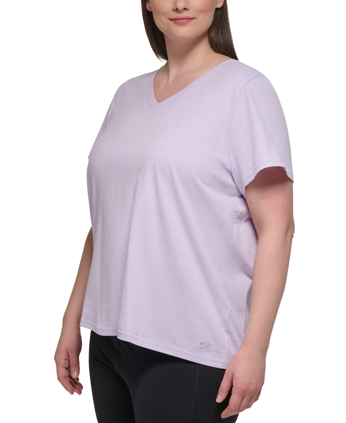 Perfectly simple style in pure cotton, Calvin Klein's plus size V-Neck T-shirt features an understated tonal logo at the hemline.