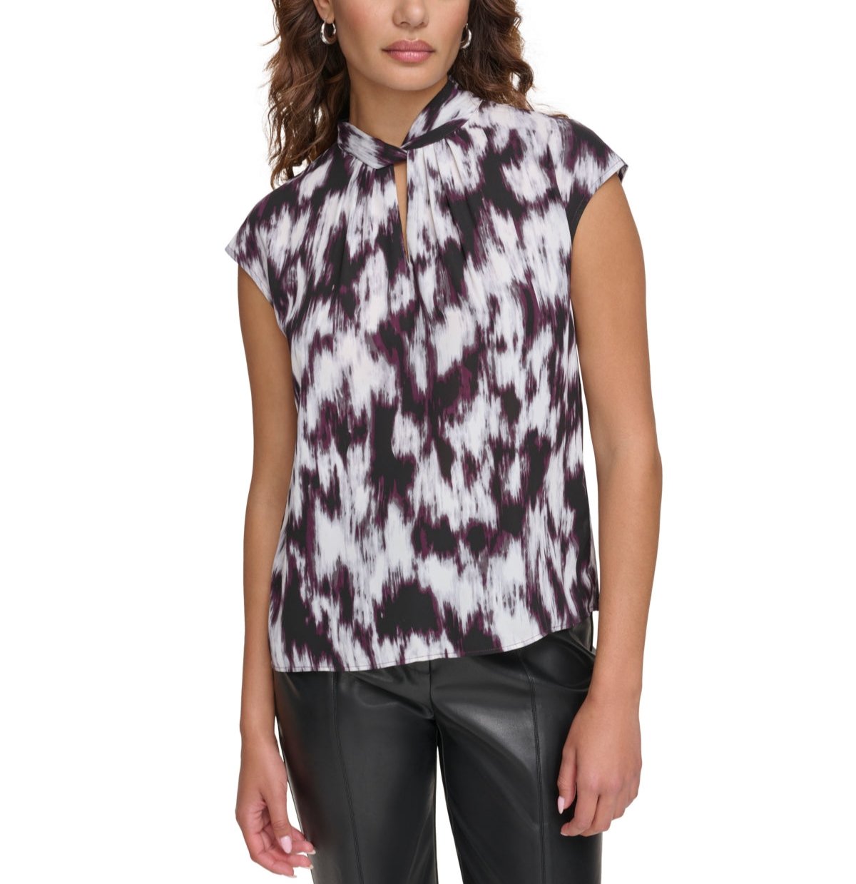 A twisted neckline adds dimensional style to this chic blouse from Calvin Klein