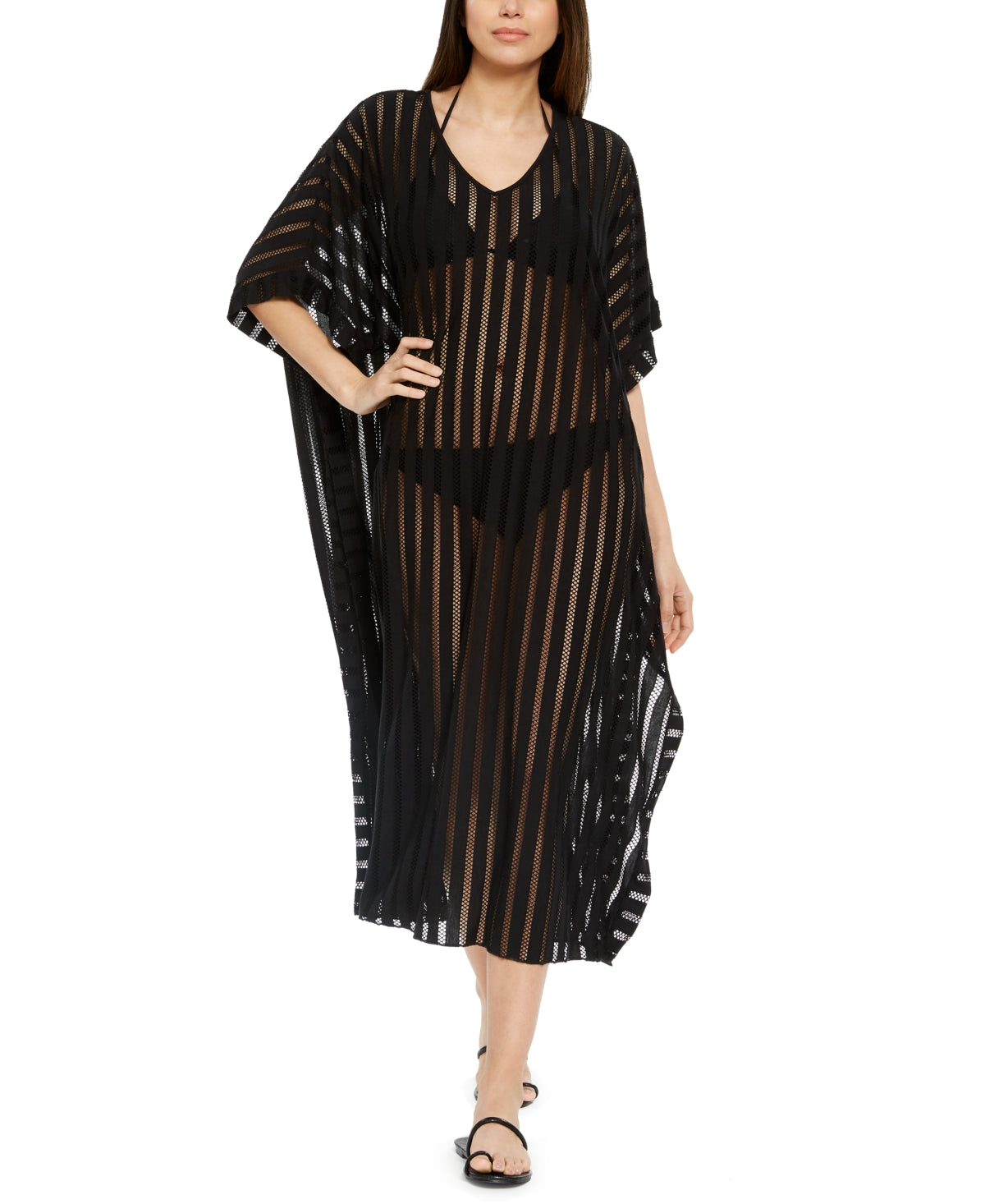 Sheer stripes lend timeless sophistication to this cover-up from Calvin Klein, a flowing maxi with slits at the sides for breezy style.