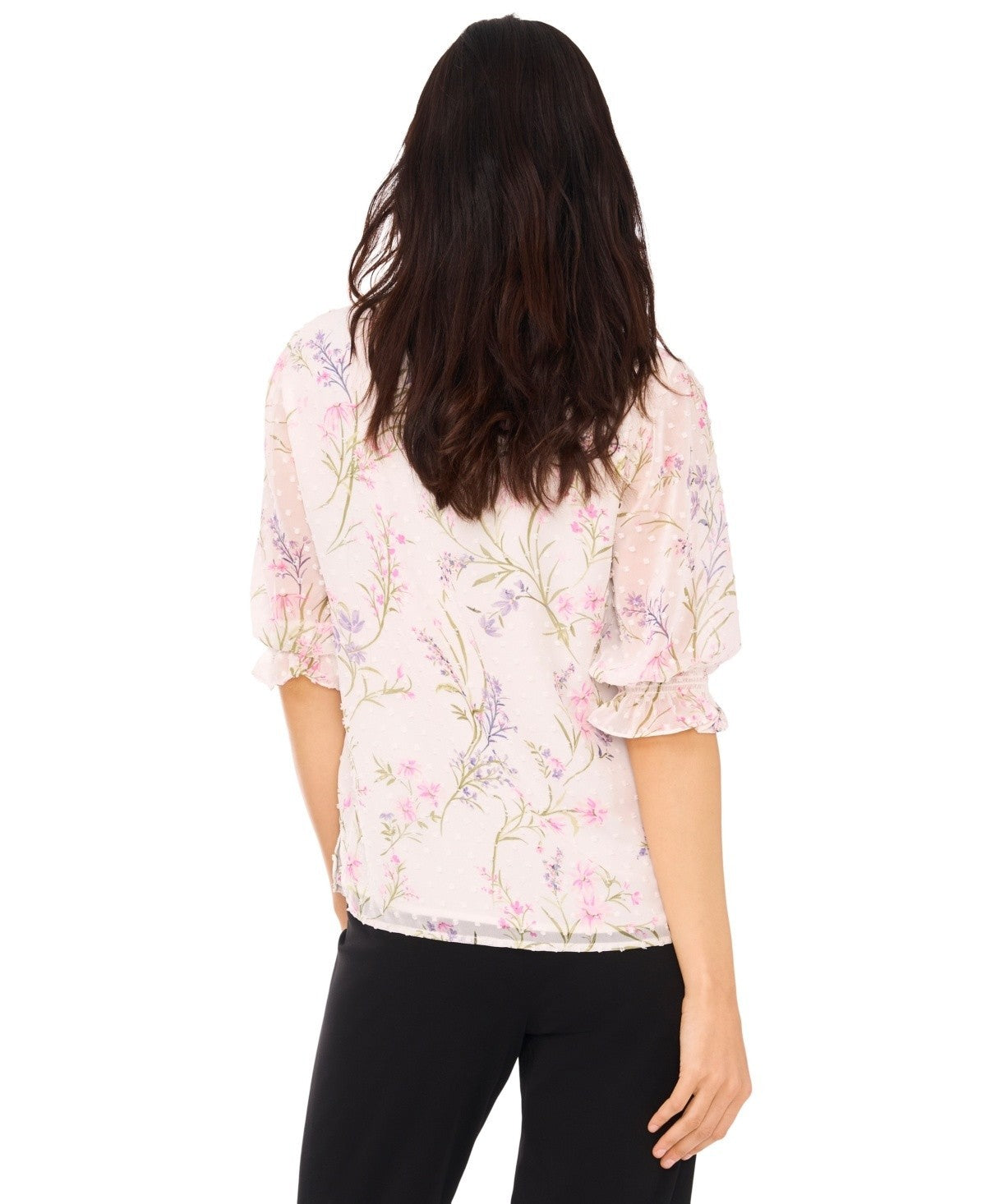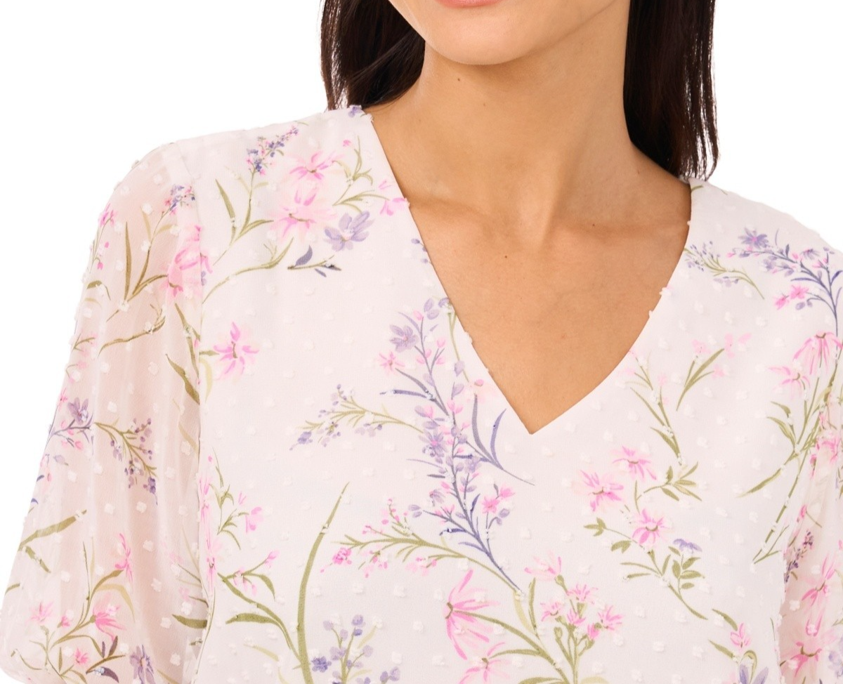 Effortlessly stylish, this V-neck blouse from CeCe features a pretty floral print and a subtle allover texture.  CeCe is a contemporary lifestyle brand inspired by a romantic take on the everyday, punctuated by taste, wit, and on-the-go flair.