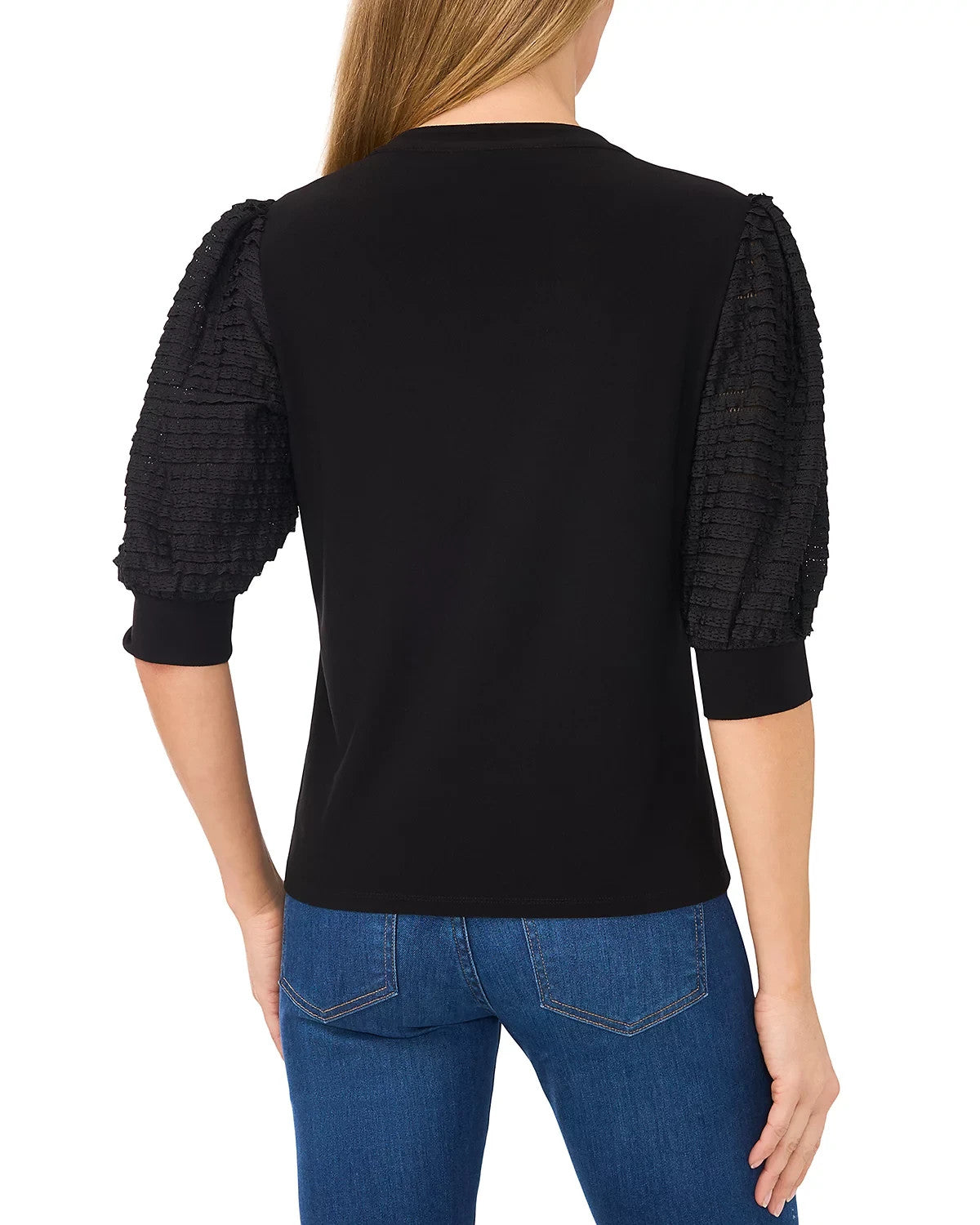 CeCe Puff Sleeve Mixed Media Top MSRP $69