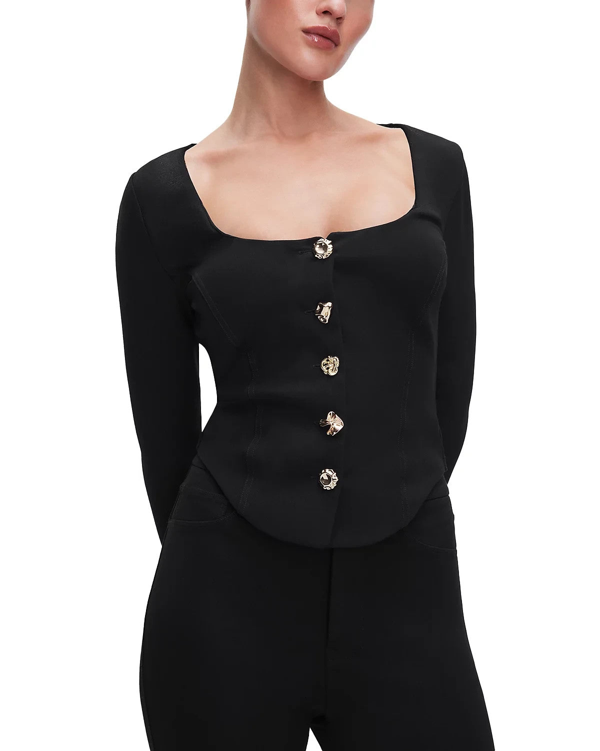 Good American Ponte Novelty Button Corset Top MSRP $129
