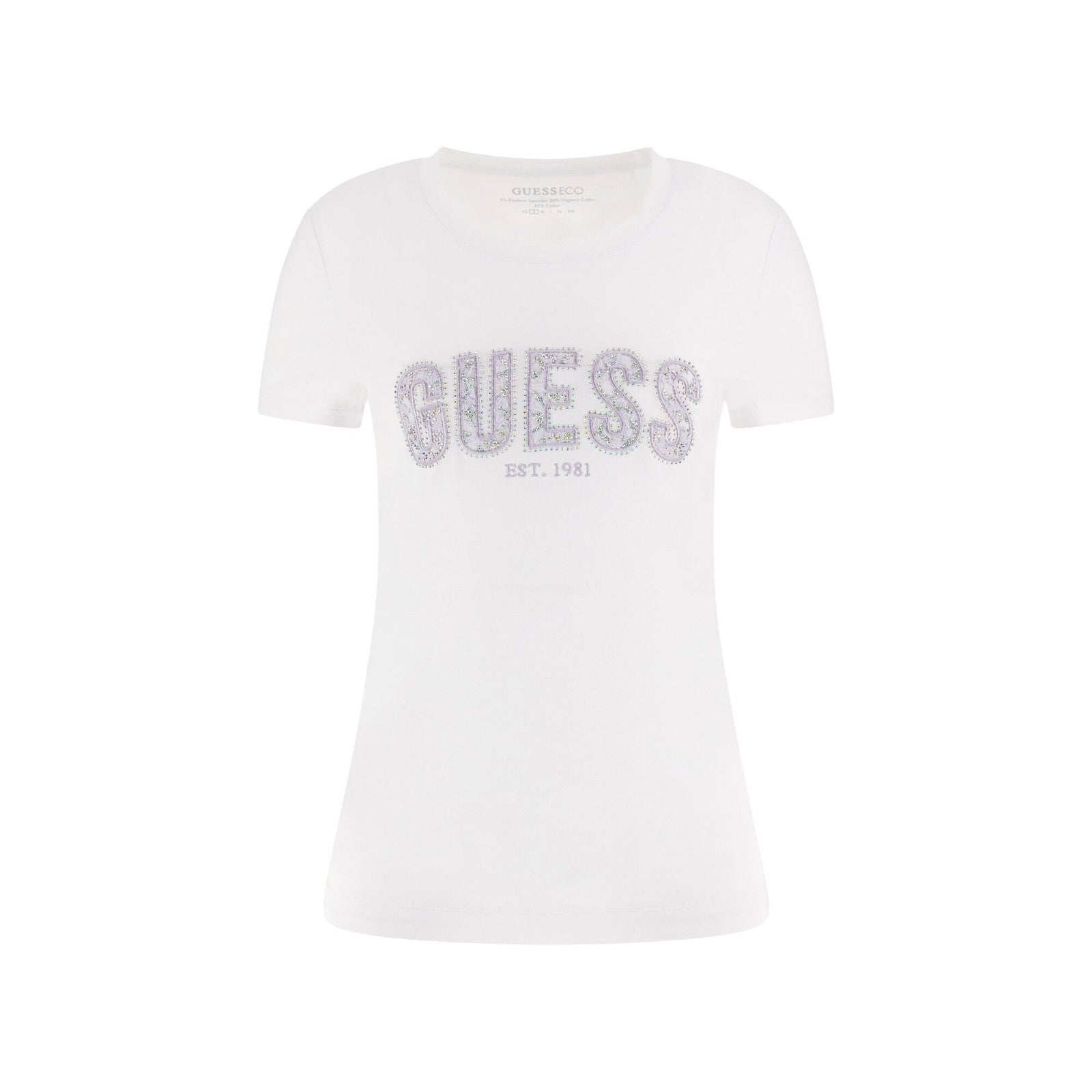 Elevate your Spring/Summer wardrobe with this versatile Short Sleeve Round Neck T-Shirt from Guess. Crafted for women, it features a classic round neckline and short sleeves for casual styling. This t-shirt offers comfort and a slight stretch for a great fit. The timeless white color allows for effortless pairing with various outfits.