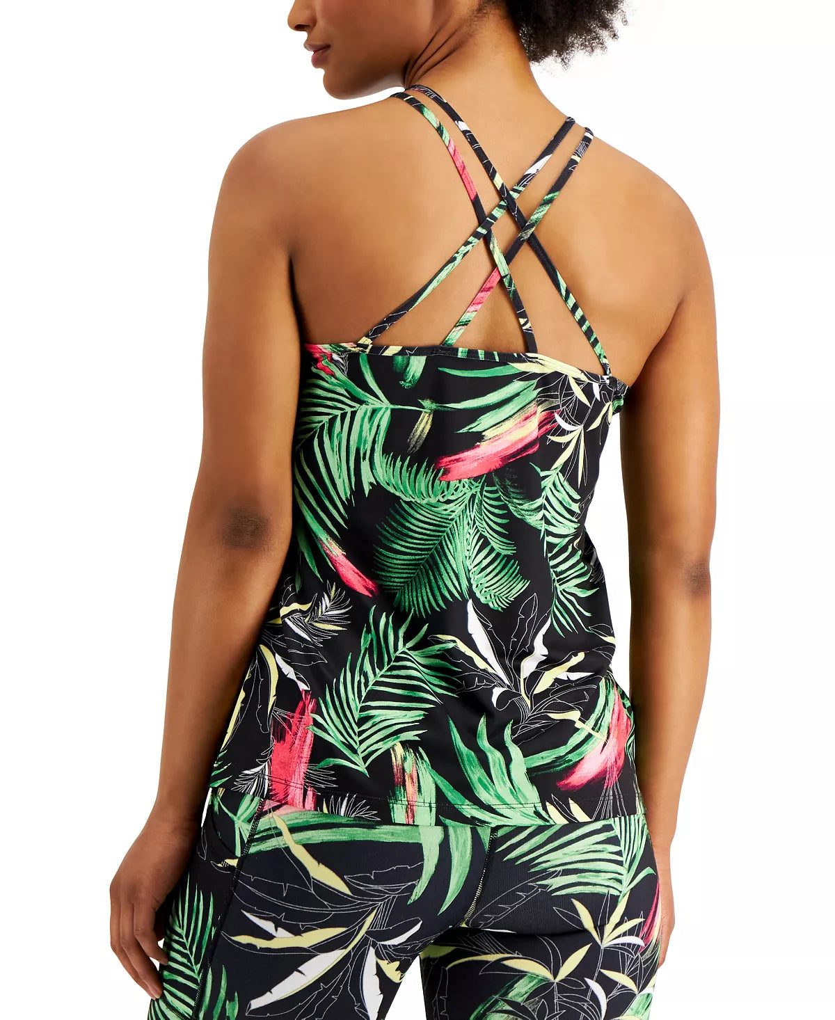 Brighten up every workout with Ideology's scoop-neck tank top, brightened with a tropical-inspired print and finished with unexpected strappy details at the back.