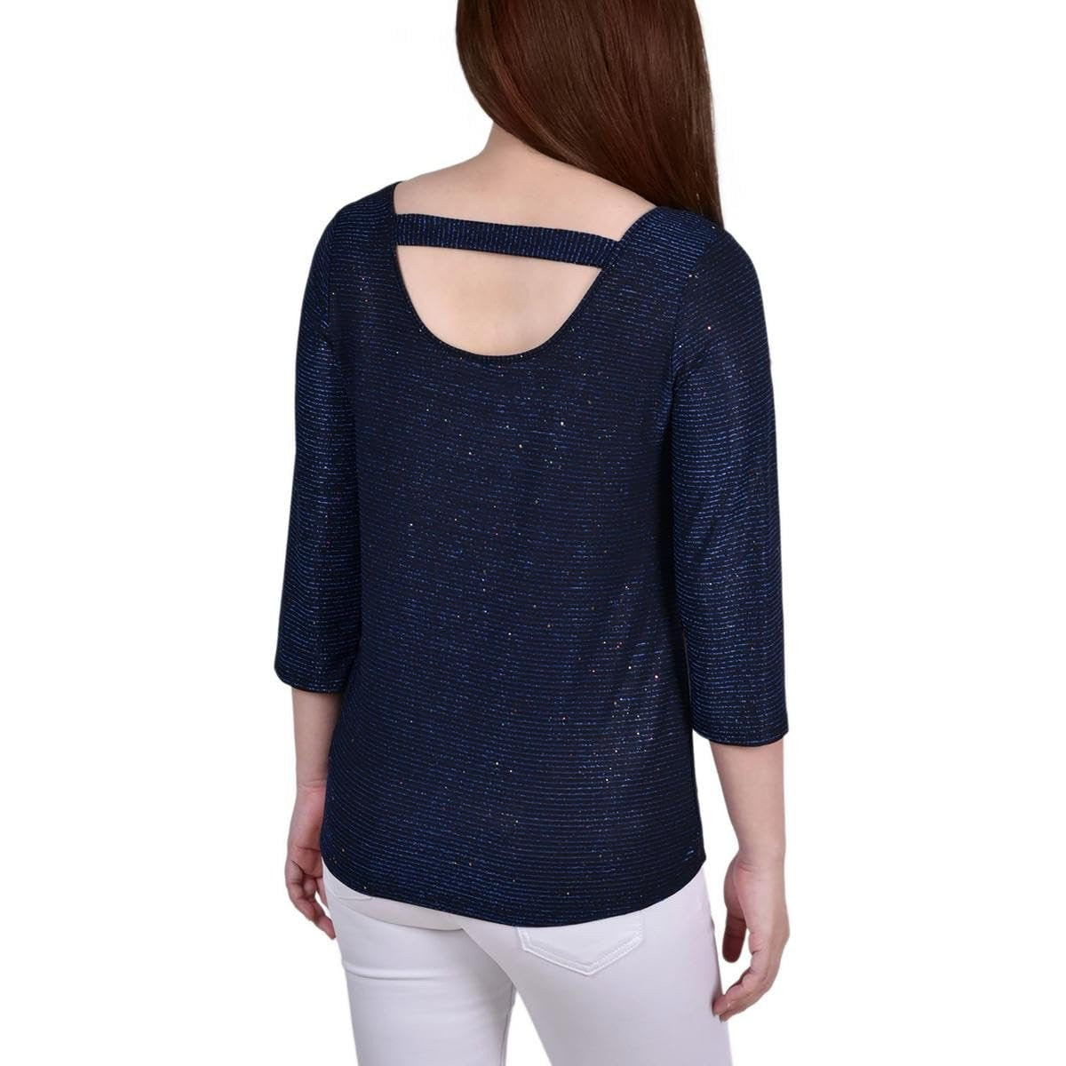 NY Collection Plus Size 3/4 Sleeve Iridescent Bar Back Top MSRP $48