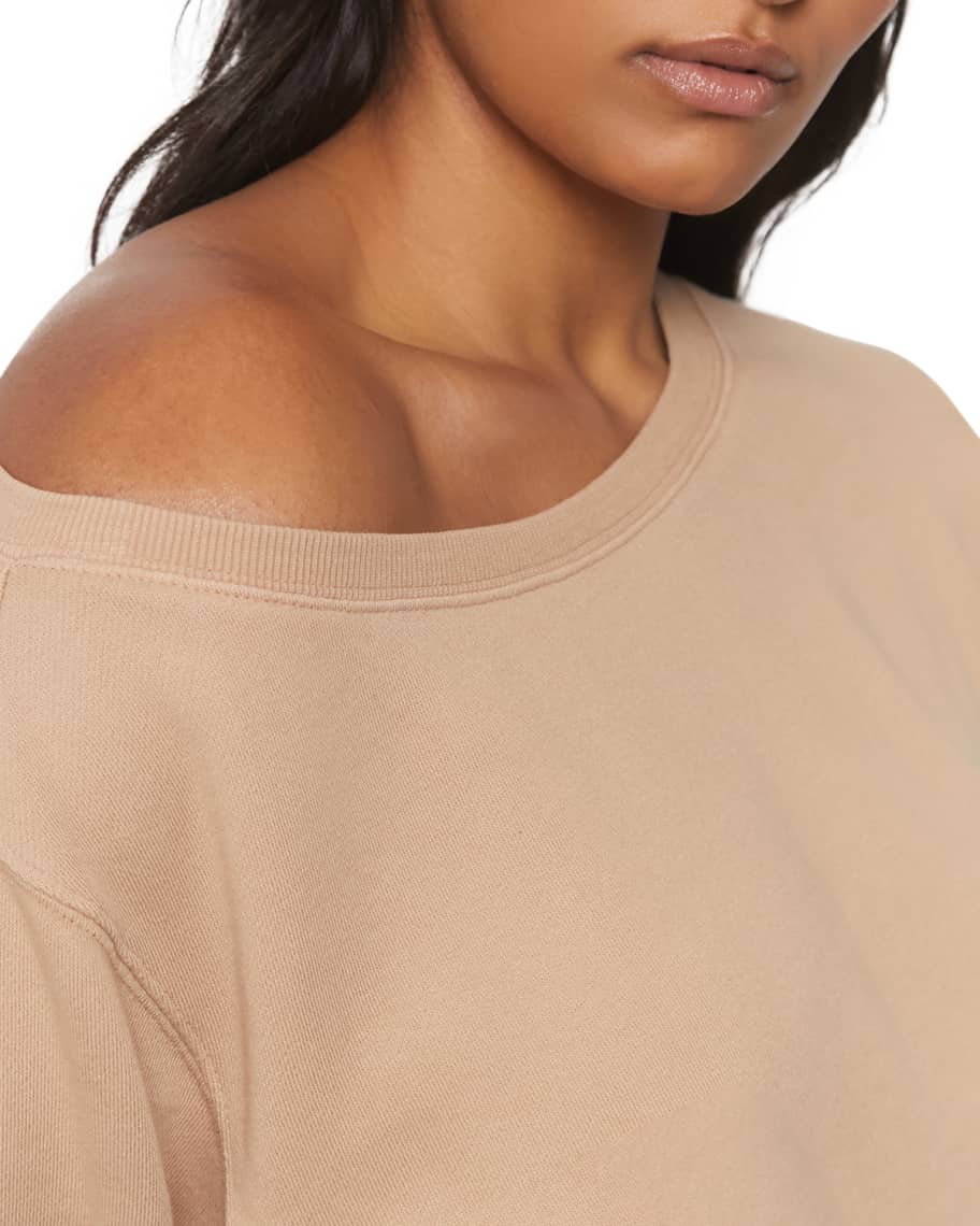 Ribbed wide neckline Pullover style Ribbed at cuffs and hem 100% cotton Machine wash Imported