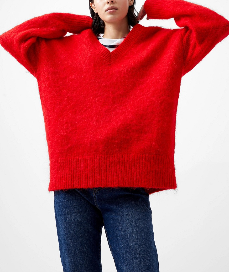 French Connection Women's Fluffy-Knit V-Neck Sweater MSRP $138