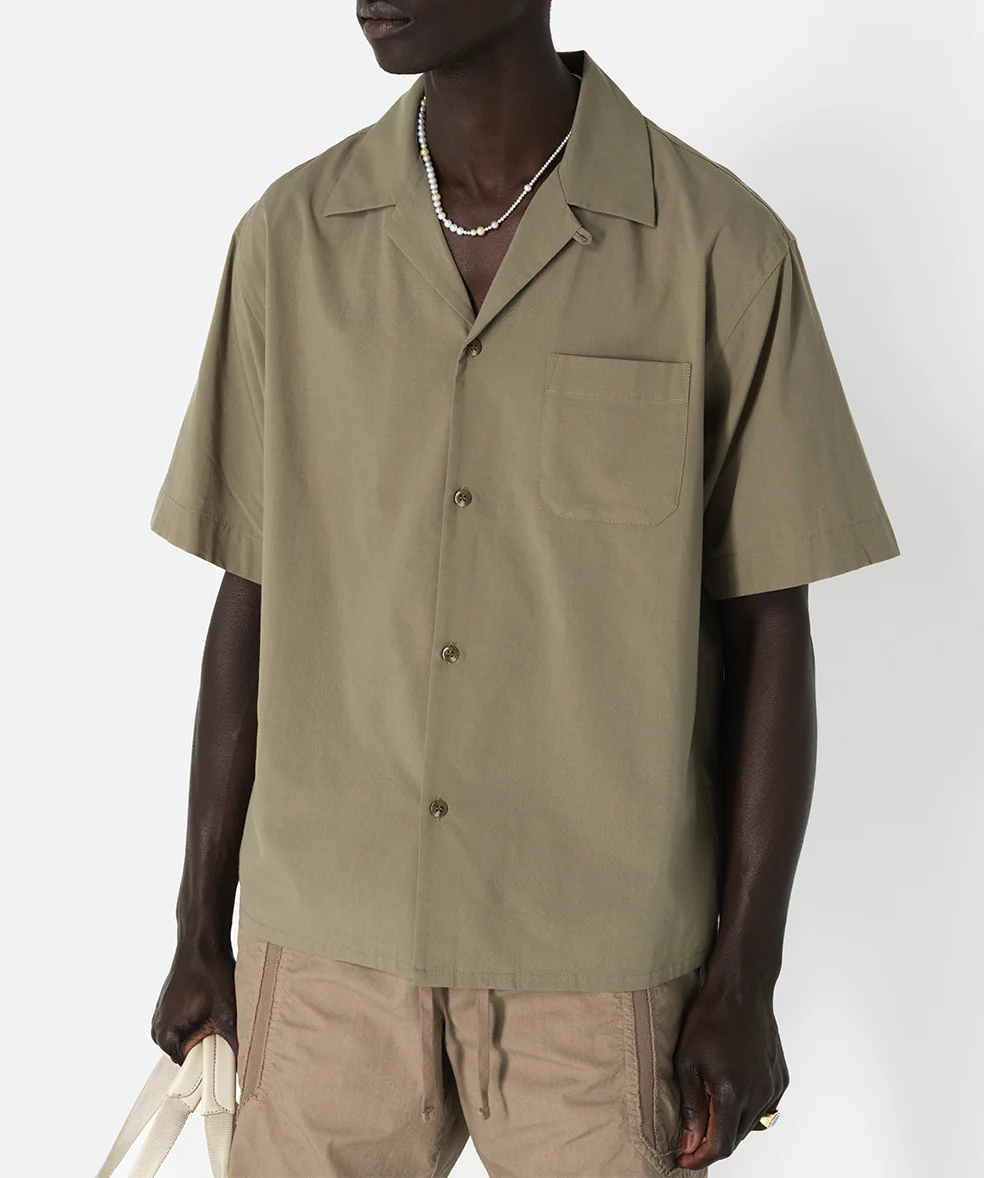 Camp Shirt in cotton / rayon blend fabric that's knit for a soft, smooth hand. This shirt features a button placket, chest pocket, and point collar. The relaxed, easy silhouette is designed to elevate any fit, whether paired with semi-formal trousers or more casual shorts.