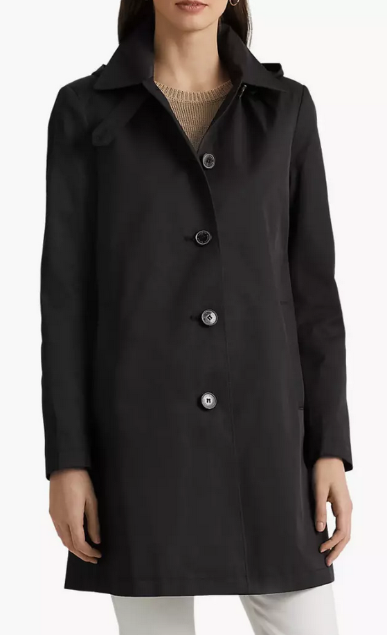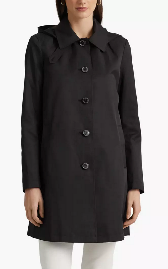 This refined trench coat from Lauren Ralph Lauren is an elegant addition to any outfit when the temperature dips. A detachable hood enhances its versatility.