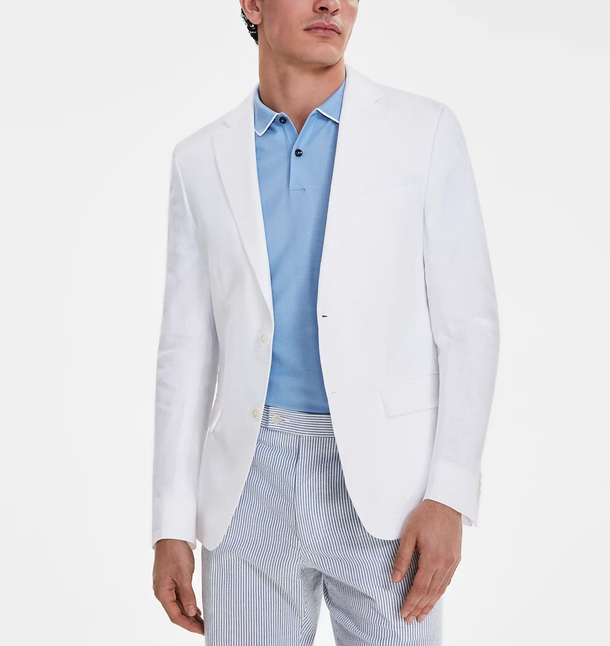 Layer this linen sport coat from Tommy Hilfiger with a polo, button-down or your most trusted pair of jeans for an elegant, cleaned-up look that hits every time.