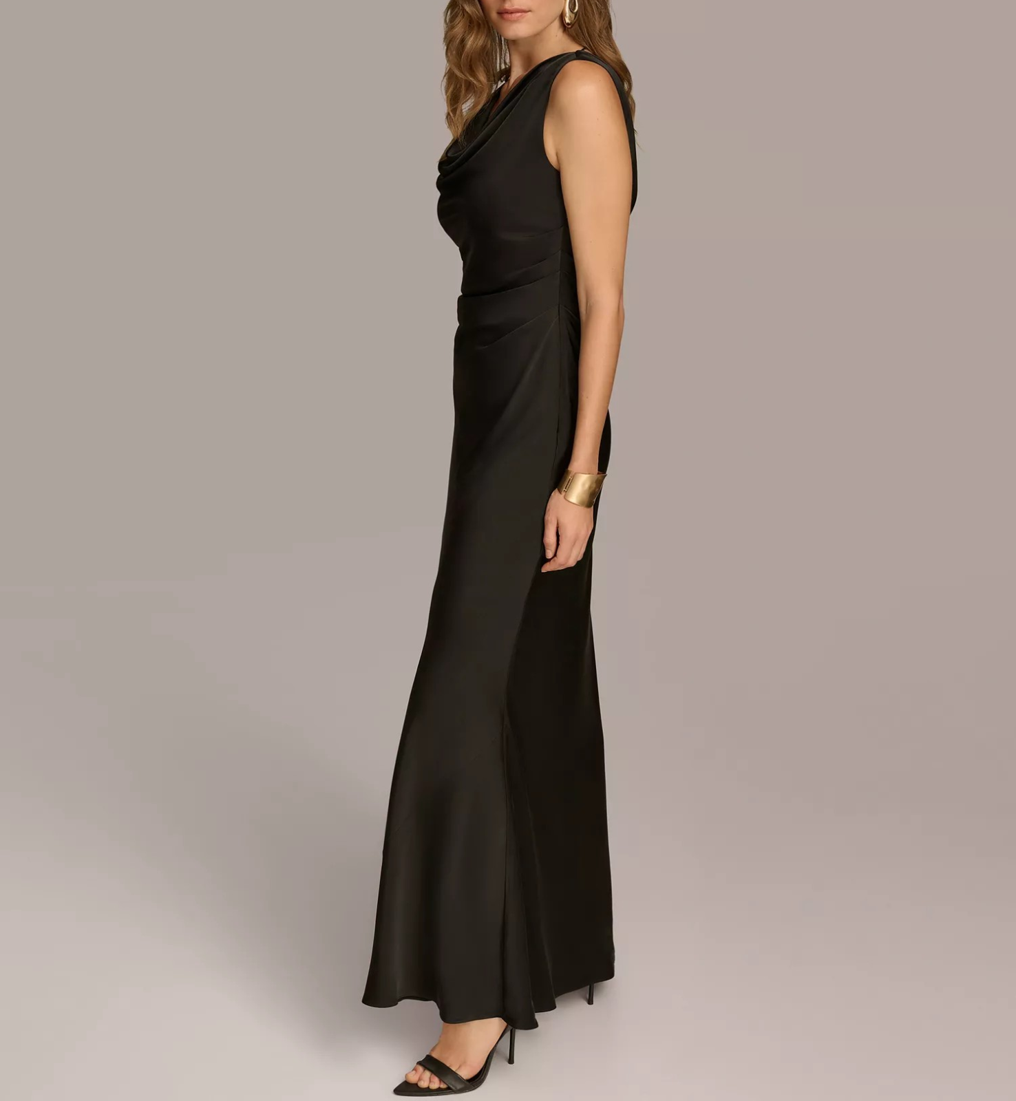 Be the image of elegance in this sleek cowlneck gown from Donna Karan New York.